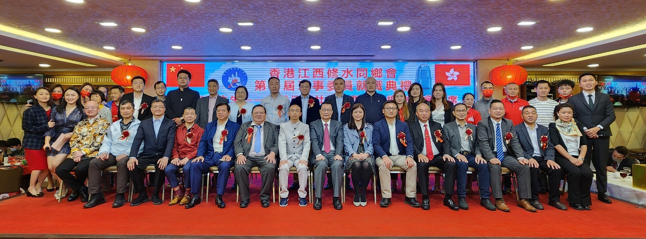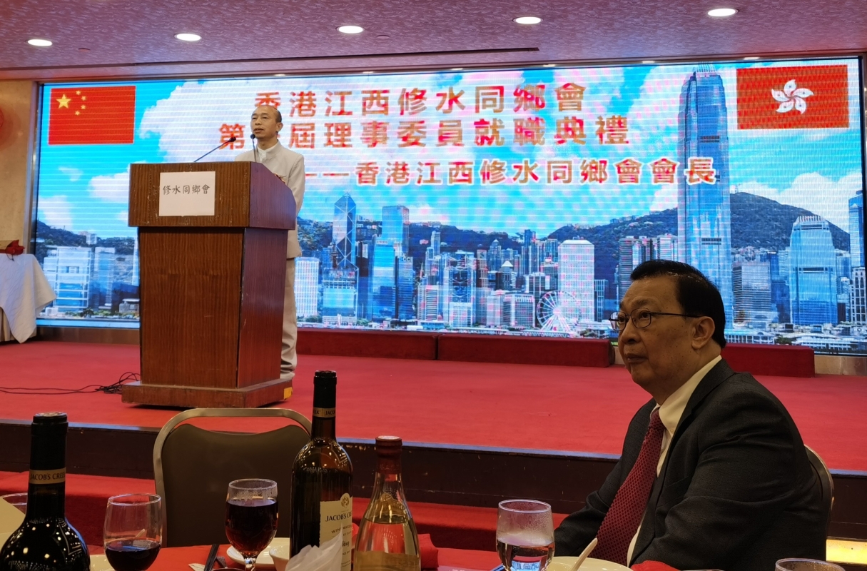 當天晚上,出席的主要嘉賓有全國人大常委,香港再出發大聯盟秘書長譚耀宗、立法會議員張欣宇、港區全國人大代表黃冰芬、全國僑聯常委、緬中友好協會主席王錦彪、民建聯荃灣支部主席古揚邦、荃灣區議員文裕明、油尖旺區議員孔昭華、太極國際學院主席、前黃大仙區議會主席、JP林文輝、江西省旅港同鄉會會長陳成爐、香港江西社團(聯誼)總會創會主席何志平、江西省旅港同鄉會永遠名譽會長、王氏港建總經理林富強、江西省九江企業家香港聯合會會長王志峰、深圳市中快餐飲集團有限公司董事长李平金、江西萬福集團董事長周衛星、全國青聯委員何吉倫、香港中文大學(深圳)校長助理盧國師、深圳市江西修水商會執行會長郭春林、香港江西修水同鄉會會長冷先鋒等有來自香港其他社團機構、江西、深圳等近400人共聚一堂,場面歡樂喜慶 。 中共九江市委統戰部、中共修水縣委統戰部分別發來賀信,表示祝賀并寄望香港江西修水同鄉會“朋友圈”越來越大,作用越來越大、知名度越來越大,發揮愛國愛港影響力,為推動香港特區繁榮穩定貢獻力量!希望在港鄉親更多地關注家鄉。