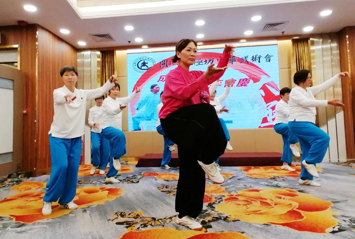 香港新聞網3月5日電 早春三月,萬象氣新。香港“開心太極坊中華武術會”慶祝成立四週年盛會在觀塘鳳苑酒樓舉行。來自香港文體界、武術界眾多人士出席,現場更有各門各派武術表演,抽獎助興等,節目精彩紛呈,場面熱鬧。 “開心太極坊中華武術會”是香港中國傳統武術愛好者麥瑞芳師傅於2018年創辦,為了更好的將所學分享給街坊和武術愛好者,立志傳承太極浩然正氣之精神,以望助人為養身健身,陶冶性情。近年來,雖然疫情困惑,但是跟隨麥師傅練習太極拳的學生有增無減,大家都希望能夠健身抗疫,這給了麥師傅很大的信心和鼓勵。麥瑞芳醉心於研究太極文化。經過多年尋師訪友,勤學苦練,尤喜虛心鑽研陳式太極拳、楊氏及武式。 麥瑞芳師傅熱衷於交流,曾參加多項香港及海外武術公開賽,從初嘗奪冠/金牌之美妙,到致力推廣宣傳武術文化和太極拳運動,她不遺餘力。多次前往上海及鄭州等地,交流學習太極之精深,并為推廣國學太極文化做出積極貢獻。(毛志亮攝)