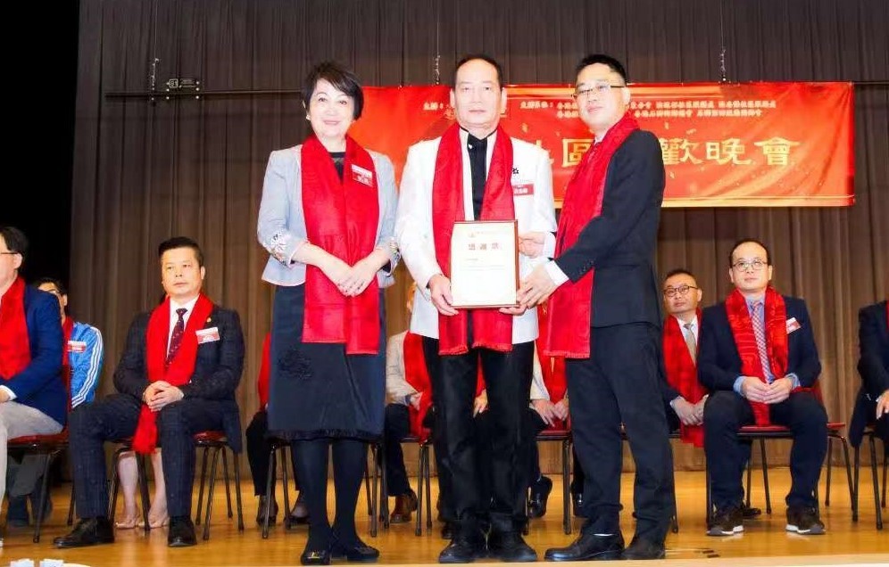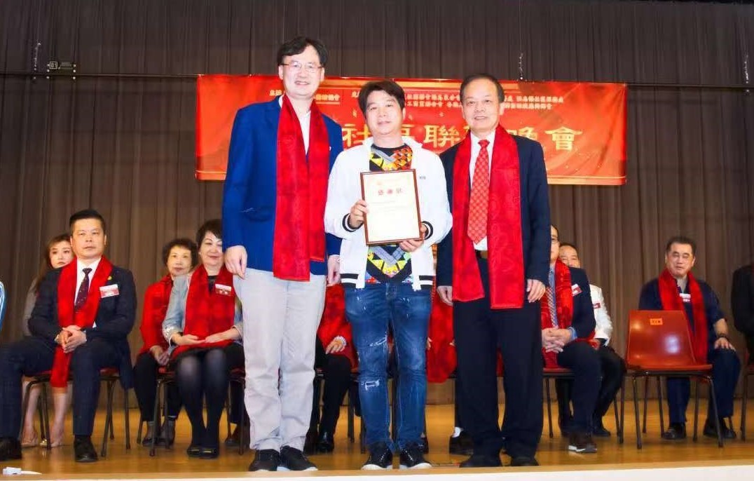 香港福建社團聯會港島東分會執行會長柯文華(右)和民建聯東區支部主席洪連杉(左)為演出團體頒發感謝狀。