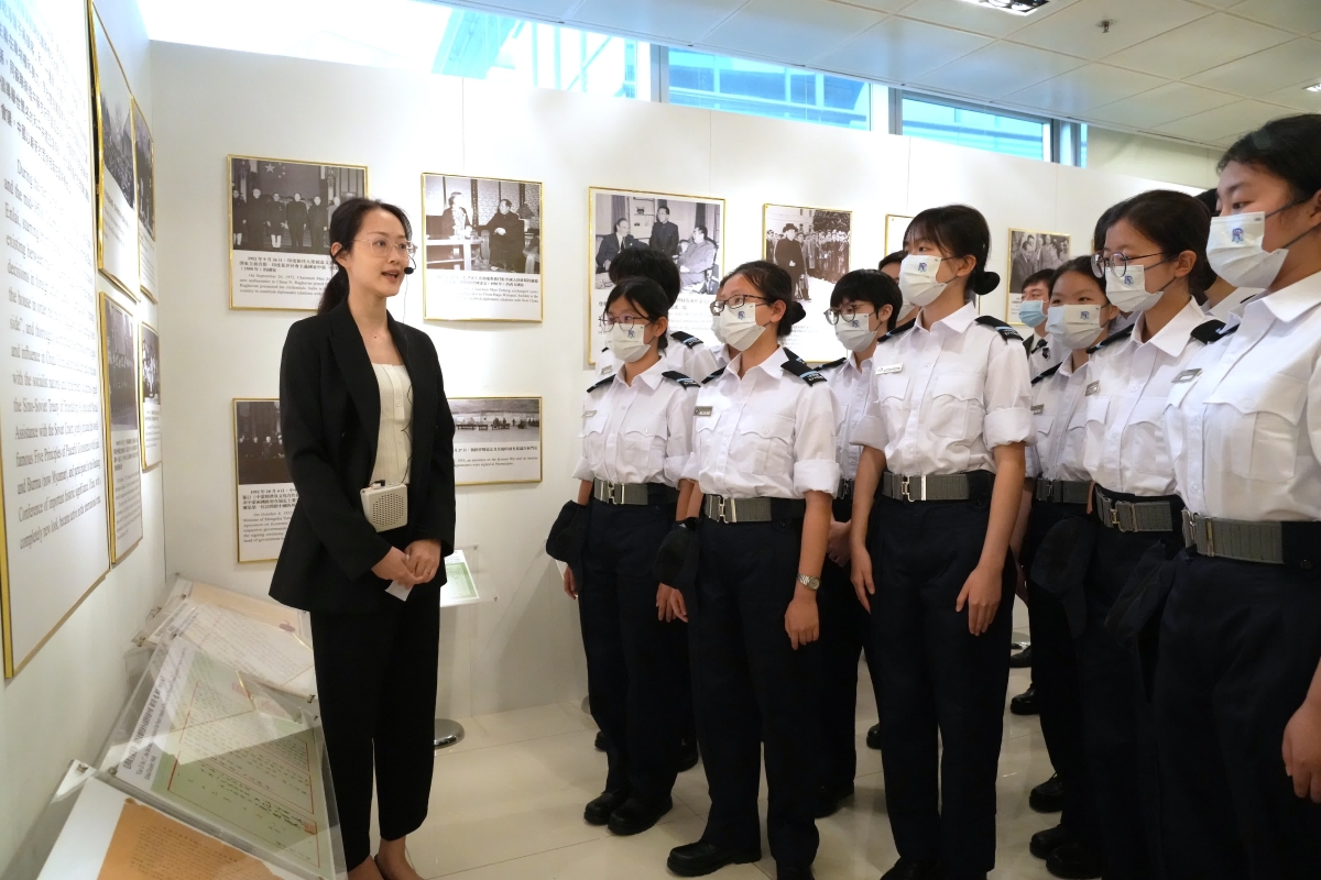 入境事務處青少年領袖團參觀外交部駐港特派員公署。圖源:入境處 領袖團希望團員透過今次活動,讓團員了解國家外交發展歷史、公署主要工作及涉港領事保護相關資訊,與公署外交官交流更可以擴闊團員的國際視野。今次亦是新冠疫情以來首次有紀律部隊青少年團體到訪公署。