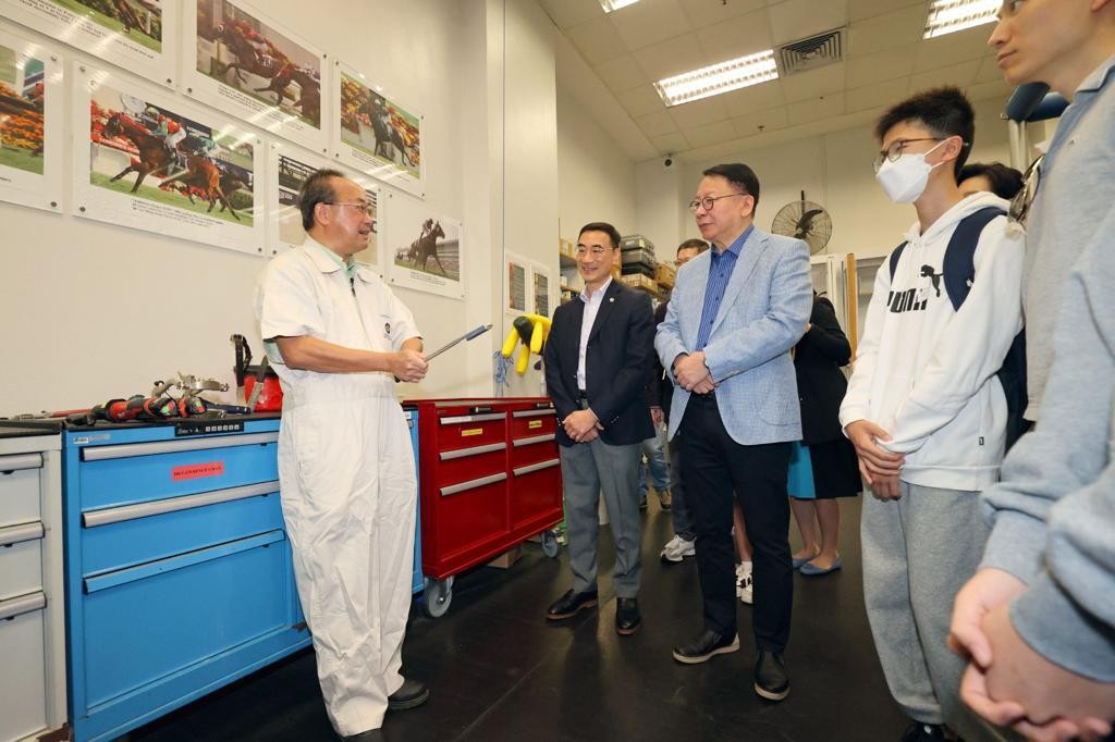 馬會主席利子厚、政務司司長陳國基 與一眾友師和學員聆聽獸醫解說。圖源:星岛日報 利子厚表示樂見學員反應熱烈,讓他深感鼓舞。兒童及青年發展是馬會的慈善策略範疇之一。多年來,馬會一直不遺餘力地推動各類型兒童及青年發展項目。馬會至今已為計劃學員安排參觀屯門公眾騎術學校、大館 — 古蹟及藝術館和馬場餐飲部等設施。計劃將會繼續舉辦不同參觀活動,探訪馬會其他設施,包括賽馬會滘西洲公眾高爾夫球場、跑馬地會所及賽馬人才培訓中心等,促進學員更了解馬會各項業務運作。 馬會對是次計劃的捐助,有賴其獨特的綜合營運模式,透過稅款及慈善捐款,將博彩及獎券收入回饋香港。 (完) 【編輯:王軼南】