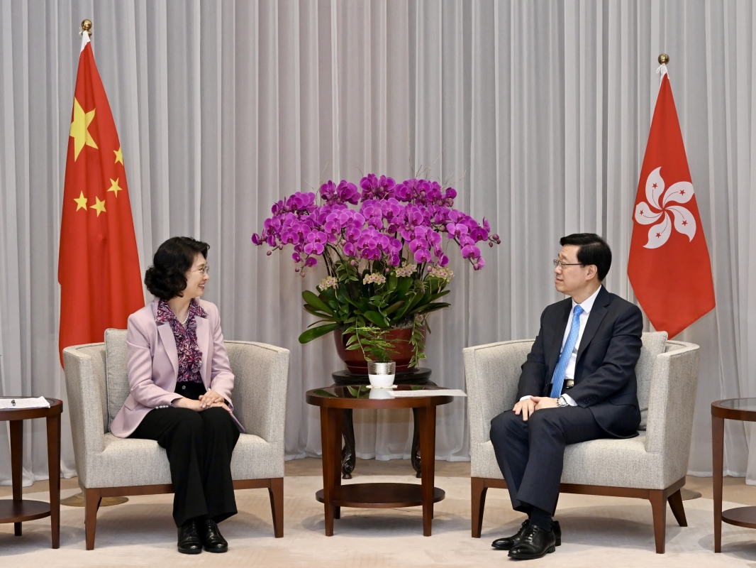 香港新聞網3月23日電 行政長官李家超今日(23日)與江門市市長吳曉暉會面,就加強港邑合作交換意見。政制及內地事務局局長曾國衞和行政長官辦公室主任葉文娟亦有出席。