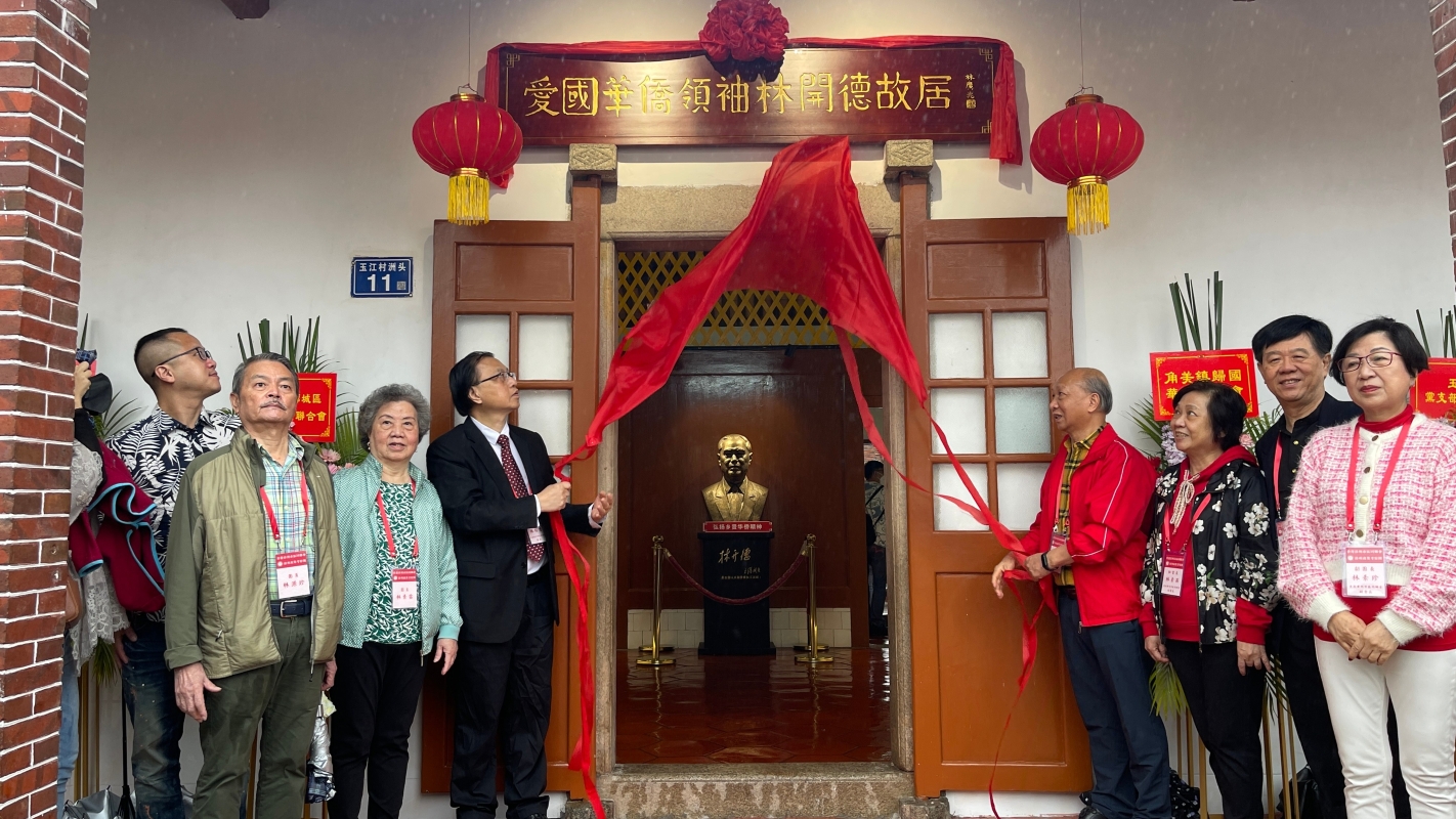 香港漳州市區同鄉會考察團成員在角美玉江村洲頭社參觀“愛國華僑領袖林開德故居”