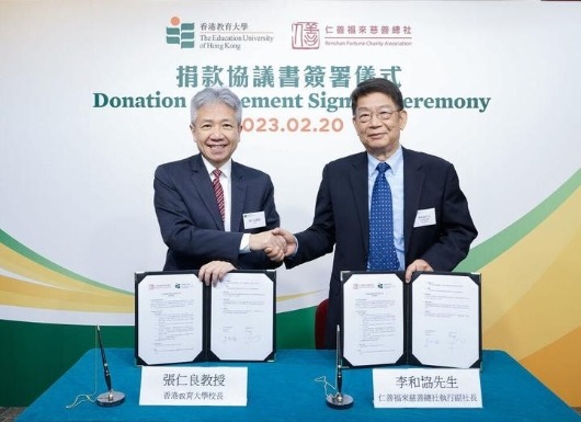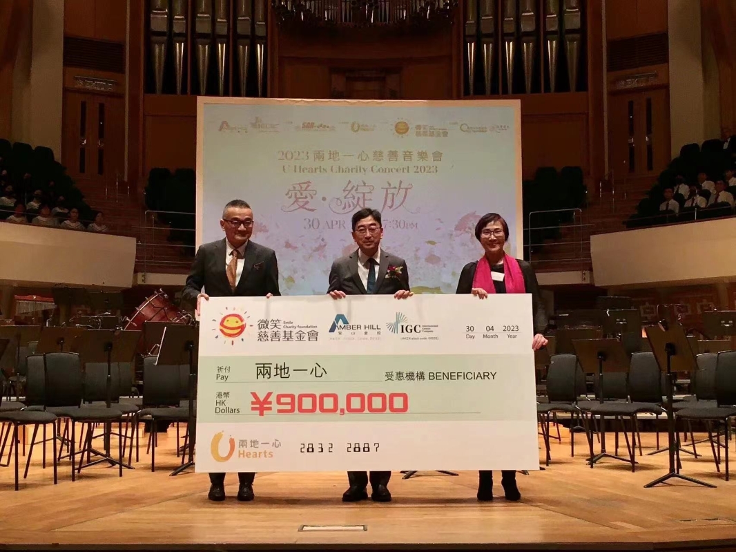 微笑慈善基金會代表(IGC董事會成員、安山集團大中華區CEO)戴承延上台頒發90萬元人民幣的大支票,“微笑慈善基金會”乃由安山集團主席及IGC公司主席吳宇於2019年創辦,基金會於2020年開始,已經捐贈港幣418萬元透過兩地一心重建5所校舍及教學配套設施及助學,分布於甘肅、四川涼州、湖南、江西、廣西及廣東(懷集縣),2023年更啟動港幣390萬項目,繼續改善祖國偏遠地區教育,今次90萬元人民幣係390萬元項目計劃當中第一期捐款。