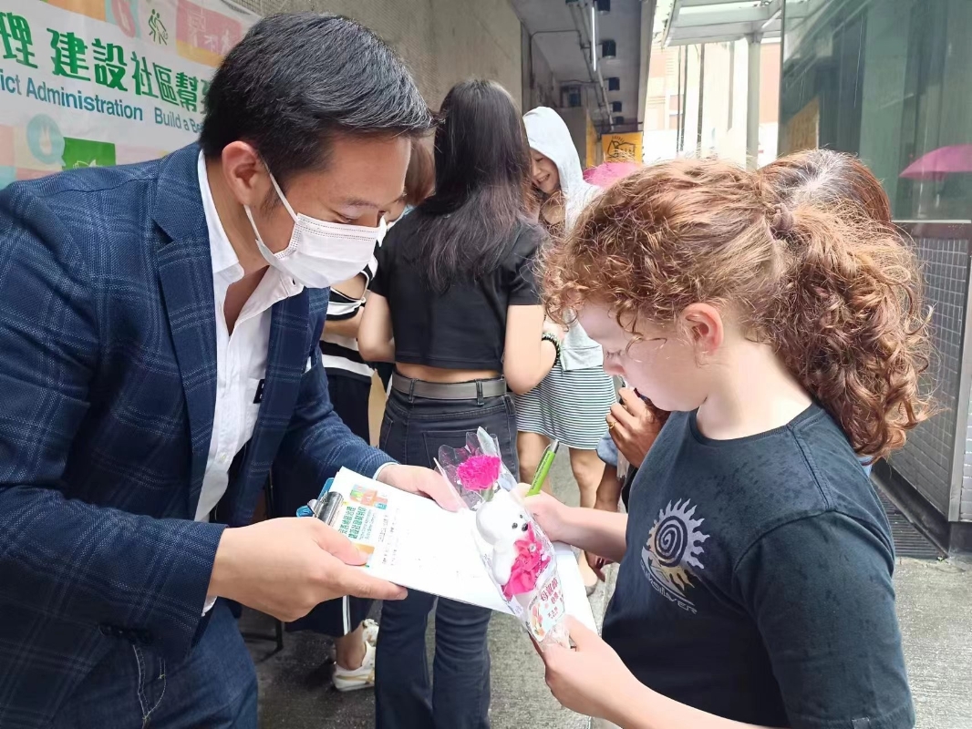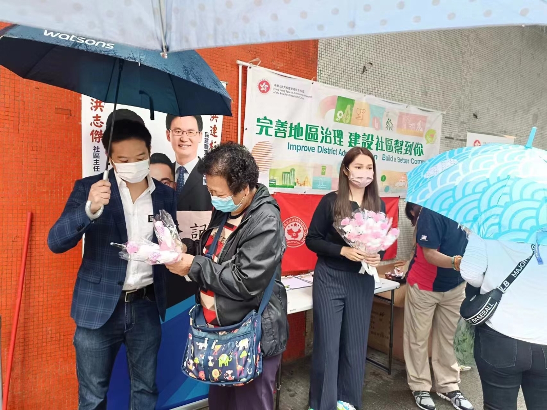 5月14日母親節,香港北角錦屏社區主任洪志傑聯合香港省級政協聯誼會,四川社團總會和成都社團總會在北角地鐵站擺設街站,支持區議會改革方案。四川社團總會副會長馬雨女士表示,雖然今天天氣未如理想,但是無阻市民支持特區政府的決心,大家都很踴躍簽名支持。現場所見,簽名的市民當中還不乏有居港的外國人士。 洪志傑社區主任表示,街坊都十分支持政府提出的區議會改革方案,方案可以在制度上堵塞漏洞、撥亂反正;另外,區議會增加不同產生辦法可以廣納賢才,令更多有志之士參與工作、增加廣泛代表性。
