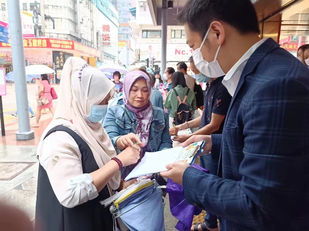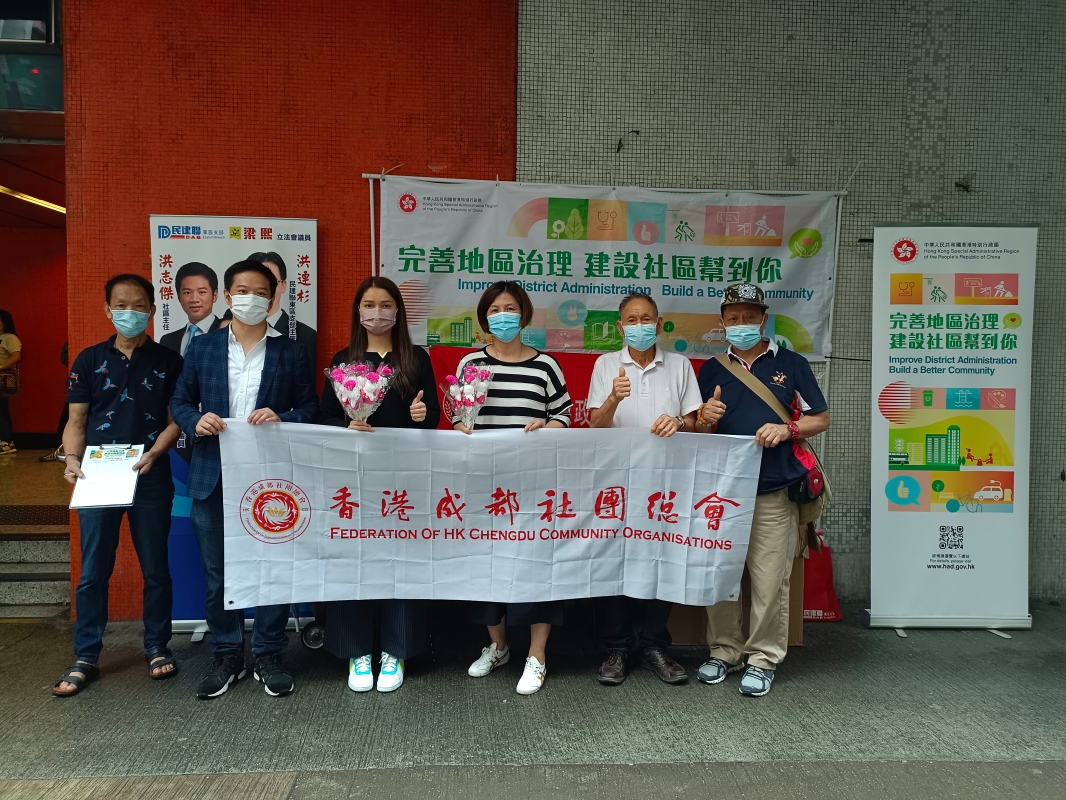 香港北角錦屏社區洪志傑聯合香港省級政協聯誼會,四川社團總會和成都社團總會在北角地鐵站擺設街站,支持區議會改革方案。 【編輯:洪少葵】
