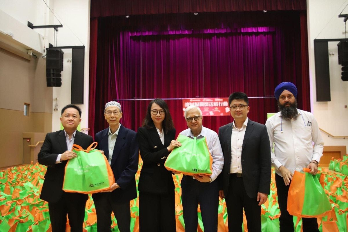 灣仔各界協會會長莊創業(左一)、灣仔民政事務專員張雁伶(左三)、中聯辦港島工作部副部長王卉(右二)與灣仔區內鍚克教及伊斯蘭教代表出席啟動禮 6月8日,灣仔民政事務專員張雁伶、灣仔各界協會會長莊創業,副主席孫日孝、周錦偉、閰偉寧、劉珮珊、溫俊文及灣仔三個分區委員會義工,在禮頓山社區會堂包裝福袋,鍚克教及伊斯蘭教亦有派出義工包裝。各人眾志成城,在短短個半小時內己完成1000份福袋,現場福袋宛如花海,不論其色彩繽紛的外表還是內在的暖情,均讓人感到賞心悅目。