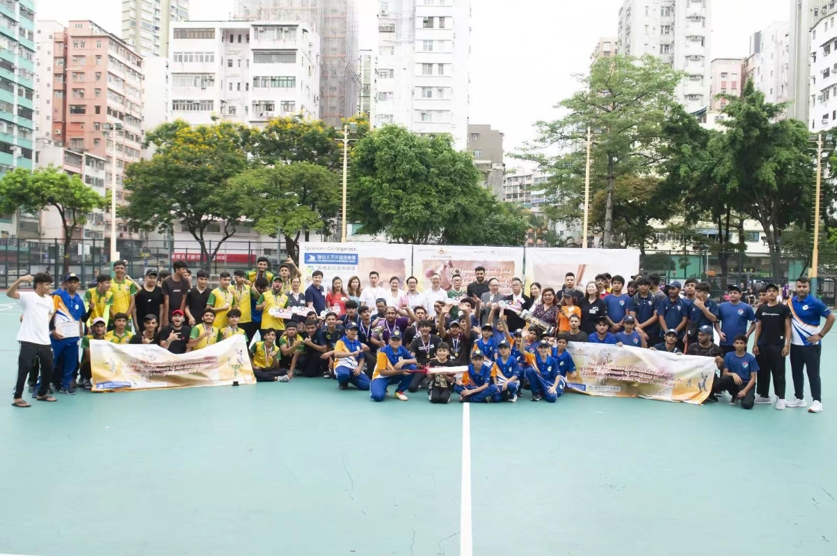參賽球隊與主禮嘉賓大合照。(受訪者供圖) 活動25日於深水埗楓樹街球場舉行,得到多名社會賢達到場支持,包括房屋局副局長戴尚誠、深水埗民政事務專員黃昕然、立法會議員梁子穎、香港板球隊隊長Mr.Nizakat Khan、以及深水埗區地區領袖出席支持。比賽當日共有8隊青年少數族裔球隊參與比賽,氣氛熱烈,現場觀眾有深水埗區的坊眾及專誠來觀賽的少數族裔人士,近300名觀眾在席上無分你我,共同為比賽的青年球員打氣。