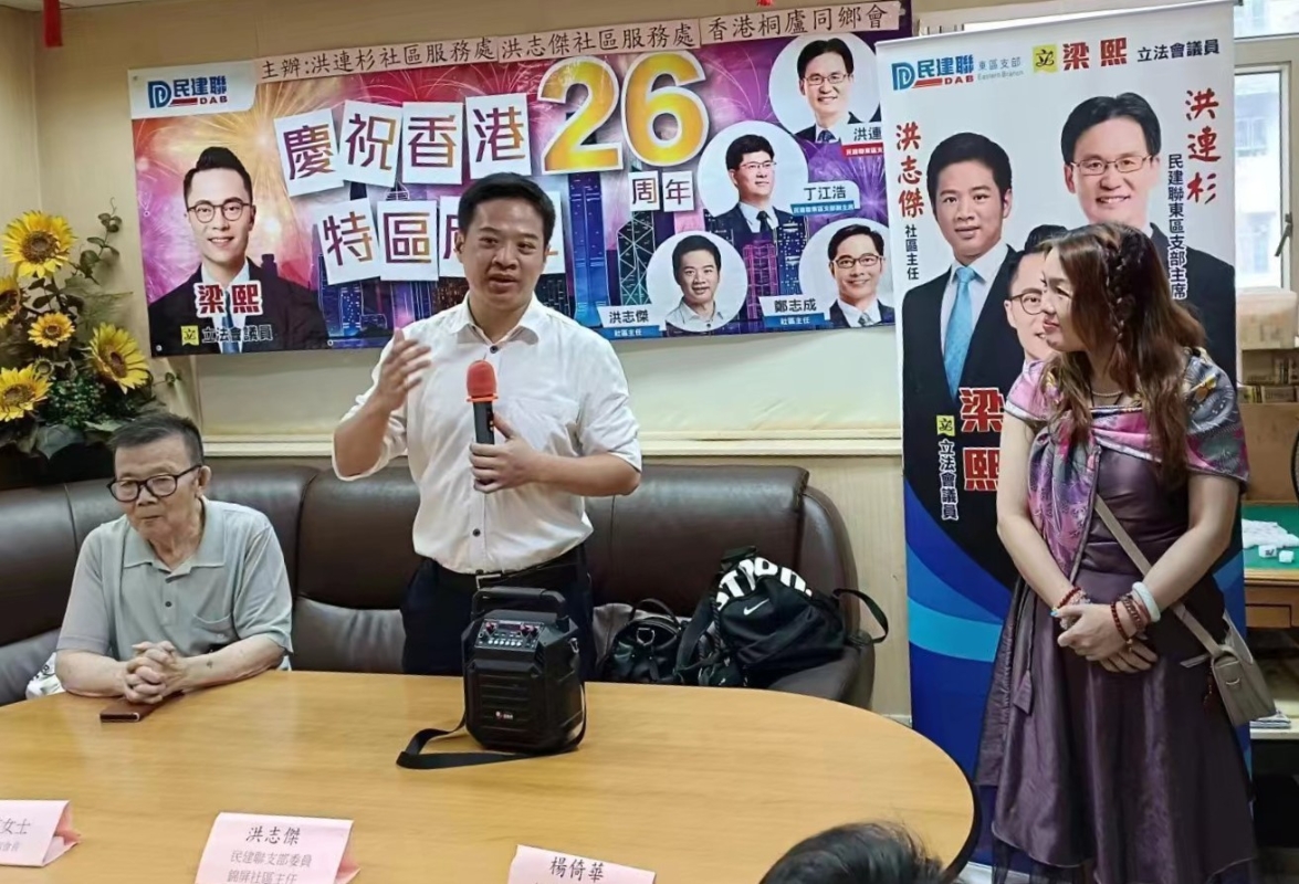 7月2日,由洪連杉社區服務處、洪志傑社區服務處和桐廬同鄉會合辦的《慶祝香港回歸26周年》座談會圓滿舉辦。香港民建聯東區支部委員洪志傑表示香港回歸祖國26年來,在祖國的支持和港人的努力下,香港雖然面對不少的挑戰,但是每次都能克服,而且令社會更加和諧與進步。分享嘉賓、桐廬同鄉會副會長顧琦英說,香港的成功實在離不開中央政府始終高度重視發揮香港的優勢和特點,是全港700多萬港人之福,大家要懂得珍惜。分享嘉賓楊倚華女士更期望與會者要共同說好中國故事,說好香港故事,不要辜負國家對香港特區的期望。與會者都積極發言,氣氛十分熱烈。