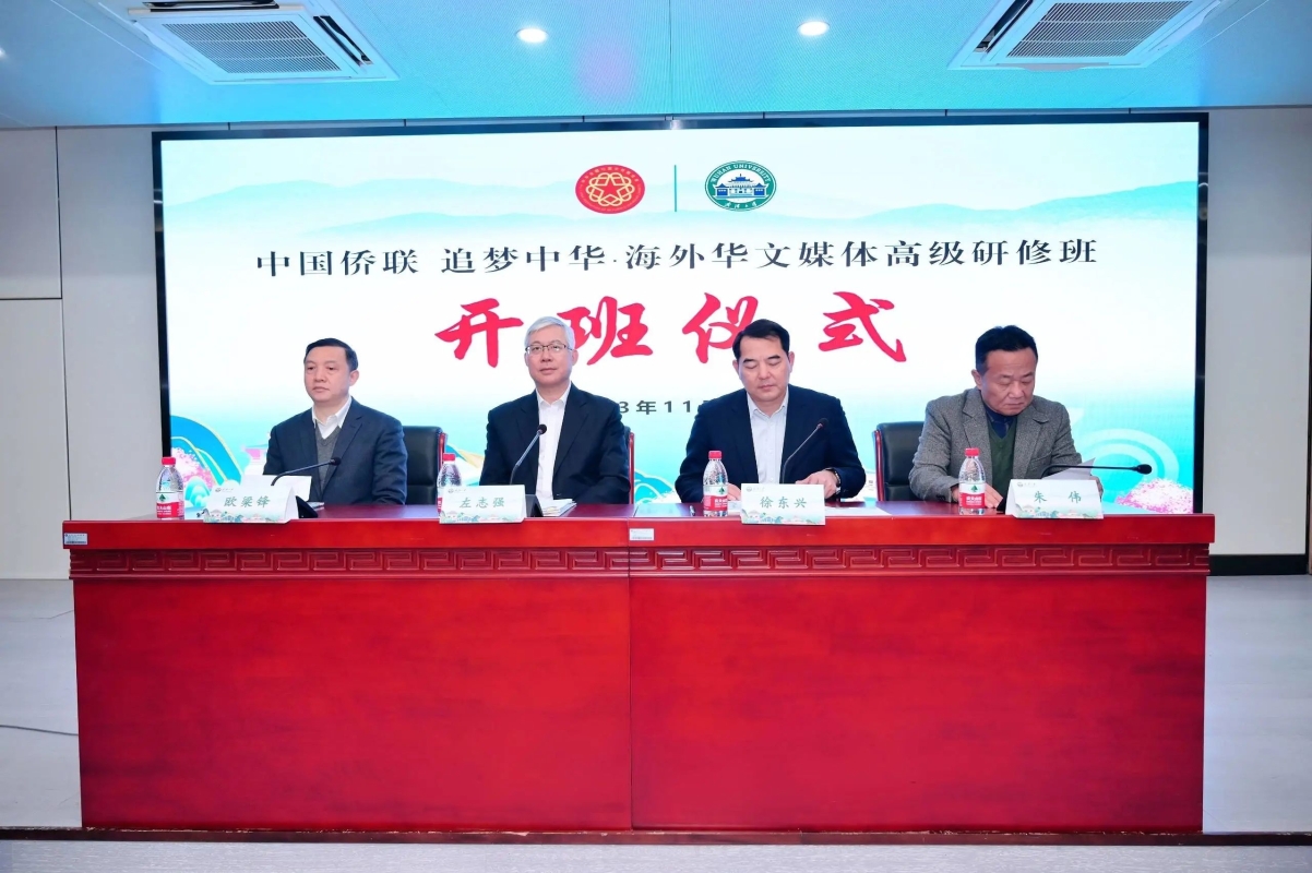 中國僑聯信息傳播部部長左志強代表中國僑聯致辭。他指出,海外華文媒體扎根海外、植根華社,在傳承和弘揚中華優秀文化、反映僑界聲音、促進華社團結、維護僑胞福祉,推動僑胞融入主流社會,增進住在國對中國的瞭解,促進中外友好往來等方面做出了積極貢獻。他希望大家珍惜這次學習機會,安心研修、深入思考,汲取專家們的知識和經驗,匯聚友誼、勤於交流,將靈感的碰撞轉化為能力的提升。學習與實踐相結合,把從研修活動感受到的中華文化風貌,體現出的新時代巨大變革,準確、客觀地報道出去,演繹精彩的中國故事。