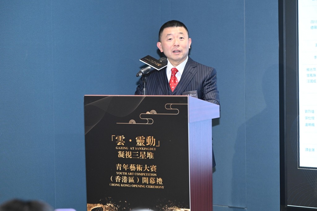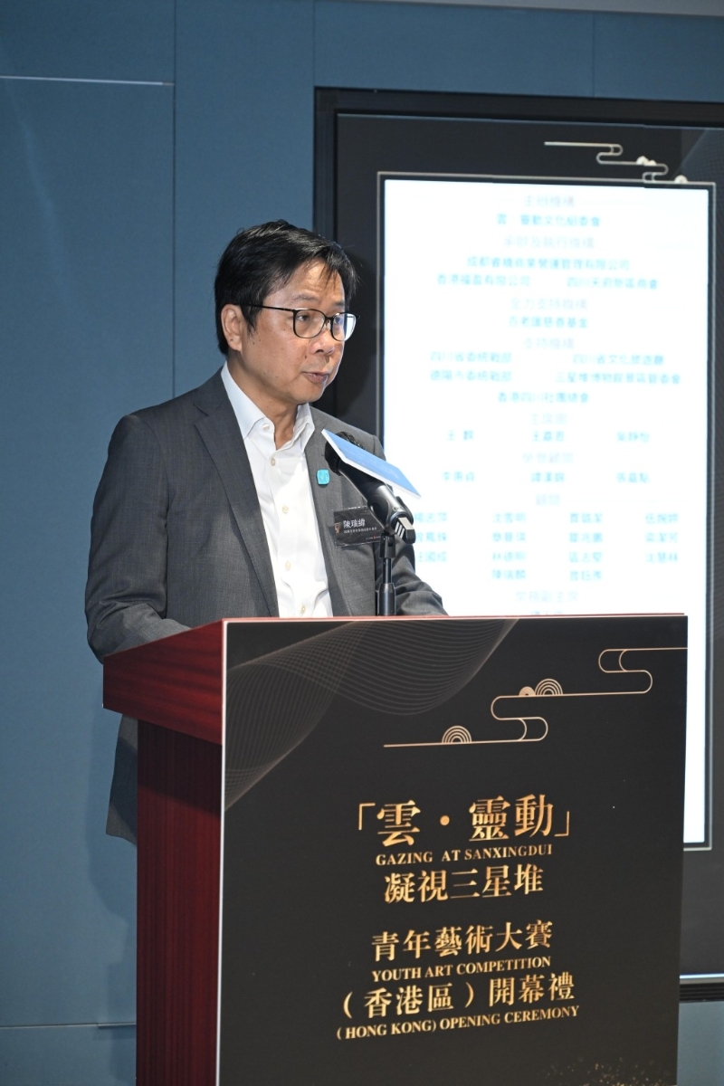 陳瑞緯致辭 大會常務副主席、四川省政協委員譚人俊致謝辭時表示,大會希望通過此次活動能夠真正通過藝術這個媒介,促進川港兩地青年藝術愛好者和文創產品設計師相互學習和交流,激發創新的火花,亦希望讓更多人瞭解和欣賞到川港兩地的藝術魅力。 “雲·靈動—凝視三星堆”青年藝術大賽延續“凝視三星堆—四川考古新發現”香港故宮文化博物館特別展覽主題,是川港文化交流的一次重要活動,旨在通過比賽為川港青少年提供展示才華、交流學習的平台,讓香港青少年更加瞭解祖國、 瞭解四川,進一步增強青少年文化自信和民族自豪感。大賽面向川港兩地藝術工作者、藝術愛好者、高校學生,共設繪畫、數字繪畫、文創產品設計三個環節,將持續到2024年8月31日,獲獎作品將在成都、香港兩地展覽。