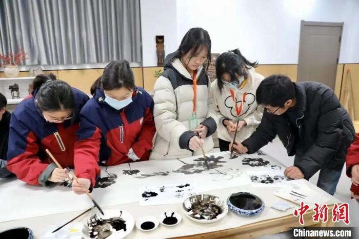 香港新聞網12月20日電 “衢州的學生真熱情啊,非常好客,教會了我們很多當地方言,那句‘危險高興寧著尼’(衢州方言音,意為:非常高興見到你)讓我印象深刻。”日前,在浙江省衢州市柯城區書院中學聯誼交流的香港地利亞修女紀念學校(協和)初二學生陳嘉權說,此行讓他感受到內地豐富多彩的文化,希望以後有機會能再來衢州玩。 據中國新聞網報道,12月18日,香港地利亞修女紀念學校(協和)師生一行三十多人來到書院中學,開展“同心同行,共赴美好”聯誼交流活動。據悉,兩校本系姊妹學校,曾組織過多次師生互訪交流活動,結下深厚友誼。今次活動為四年來,兩校首次開展的線下交流互訪行動。 “可以用側筆畫荷葉,再將毛筆立起勾勒出荷花的形狀,注意運用墨色的深淺……”在書院中學美術教室,兩校師生開展了一堂別開生面的中國畫教學展示課。內地和香港學生們認真學習繪製水墨荷花的技法,隨即開展動手實踐,在清雅的古樂伴奏下探索國畫之美,感受中華優秀傳統文化的魅力。