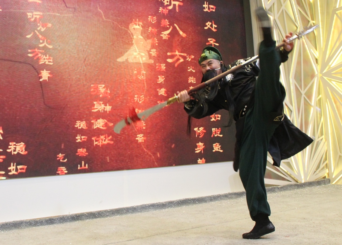 世界武術書畫家聯會創會主席高國雄表演關公大刀博得陣陣掌聲