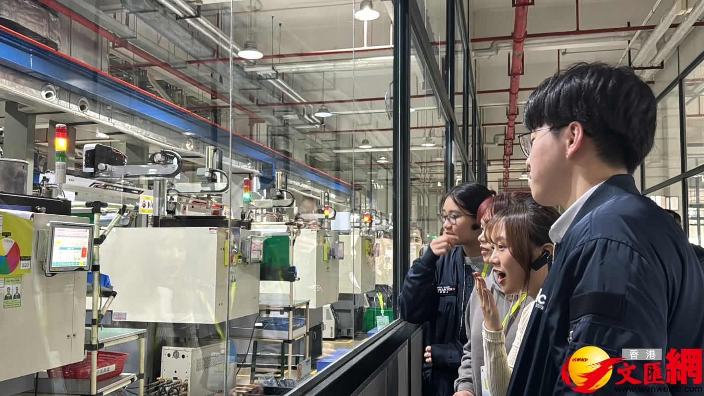香港新聞網1月5日電 光潔明凈的車間內,幾乎看不到工人的身影,一排排的機械臂正在安靜地工作;而漆黑的健康品數字化智能化車間裡,只有作業機器在間歇地閃著光,AGV(自動導引車)在註塑機之間來回穿梭;在車間一側的實時看板,集合了自動排產、生產執行、設備與模具維護、品質管理、倉存管理等模塊的數字化管理系統,讓鴻利達實現了生產製造全流程的數字化。看到眼前顛覆想像的車間,“嘩!嘩!”的驚嘆此起彼伏,前來鴻利達精密組件(中山)有限公司的香港生產力促進局冬季實習生計劃的30多名學生都表示大開眼界,更直言看到灣區內地城市的“智造”現狀,即使以前沒計劃北上發展,現在都對到灣區內地九市發展“有小小心動”。
