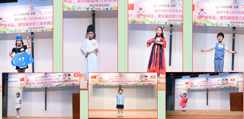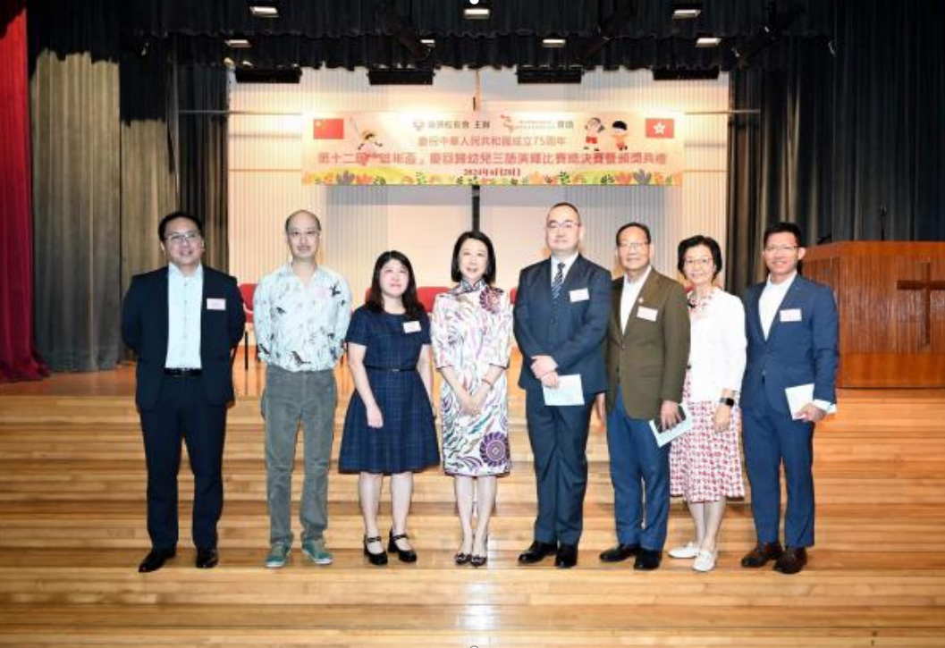 (從左到右:賴俊榮先生、葉志雄先生、廖韻芝女士、葉吳彬彬女士、邸智泉先生、朱景玄院士SBS MH 太平紳士、陳麗琴女士、朱偉林校長) 本賽事分為普通話、粵語及英語組三個部分。據資料顯示,從首次舉辦活動開始,學生的參與熱情高漲,經過主辦方多年來的精心組織籌辦及諸多評委的辛苦付出,參加學校及人數逐年呈遞增趨勢。 中聯辦新界工作部宣教處副處長邸智泉先生致辭說,語言教育不僅僅是對孩子們溝通技能的培養,很大程度上決定了下一代香港人如何看待香港這個家園、認識祖國和探索世界,重要性不可替代。特區政府去年底舉辦“兩文三語運動”,正是要積極發揮香港在"一國兩制"下背靠祖國、聯通世界的獨特優勢。 主辦方發言人表示,本活動旨在為慶祝中華人民共和國成立75周年及香港回歸27周年獻禮,加深及增進學校及學生之間的交流與友誼,創造課堂外語言環境,體現幼兒學習語言的多樣性、多管道,讓學生們充分認識到語言的重要性和價值,也更加珍惜和尊重各種語言的存在。同時也是加強學前階段普通話教育,提升學生語言交流能力,傳承弘揚以語言文字為載體的中華優秀文化。