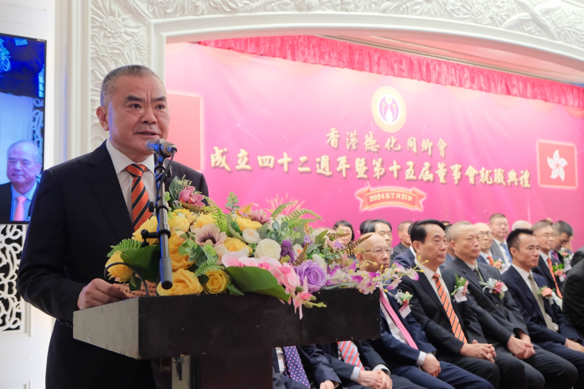 香港新聞網7月22日電(記者許其皓)7月21日,香港德化同鄉會成立四十二週年暨第十五屆董事會就職典禮在中環大會堂美心皇宮舉行。中央政府駐港聯絡辦社聯部部長鐘吉昌、香港福建社團聯會主席全國政協委員施清流、福建省泉州市人民政府副市長蘇耿聰、福建省德化縣人民政府縣長方俊欽、華閩(集團)有限公司總經理楊利玉、港區政協聯誼會監事長陳榮旋、香港福建希望工程基金會主席洪鼎擁、香港福建體育會永遠榮譽會長施純民、世界晉江同鄉會永遠榮譽會長施文誕、香港泉州社團聯合總會會長駱俊憲等嘉賓雲集祝賀。 新當選的董事會成員在熱烈的掌聲中上台接受了各項聘書。徐中膺當選香港德化同鄉會第十五屆董事會會長。 典禮現場眾多同鄉們聚集一堂,更有歌舞表演助興,一派熱鬧氣氛。德化縣人民政府縣長方俊欽在致辭中表示,旅港鄉親們能發揮閩南人愛拼敢贏的精神,順勢而為、乘勢而上、勇毅前行,在發展大潮中贏得先機、贏得主動,把自己的事業做的更大、更強。同時,一如既往地關心支持家鄉的發展,當好“宣傳員”,積極宣傳家鄉、推介家鄉,做好“建設者”,到家鄉觀光考察、洽談項目、投資興業,共譜德化發展新篇章。 據悉,香港德化同鄉會成立四十多年來,始終秉承辦會宗旨,精誠團結旅港鄉親,在敦睦鄉誼、奉獻社會、造福桑梓等方面做了大量卓有成效的工作,既促進了香港德化經貿文化交流,又推動家鄉經濟社會高質量發展,贏得了社會各界的廣泛贊譽。 德化縣是福建省泉州市下轄的一個縣。位於福建省中部,泉州市西北部,中國當代瓷器的著名產地,1996年被國務院發展研究中心命名為“中國陶瓷之鄉”。