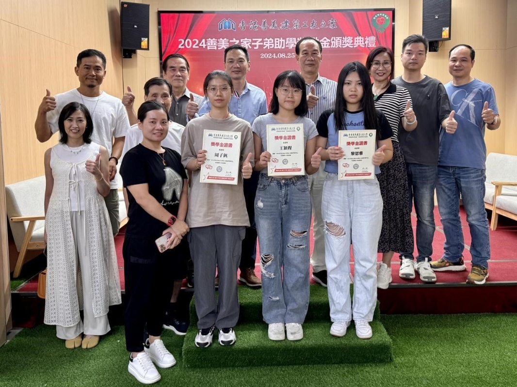 香港汕尾市同鄉總會理事長、香港家庭團聚會會長、汕尾市政協常委林詩文肯定了香港善美建築工友之家對青年工作的用心,認為助學獎勵金計劃對優秀子弟充分肯定和鼓勵。他勉勵現場學生及工友抓緊香港經濟復甦和國家發展的機遇,努力求學,裝備自己,在學有所成後投身社會,大展拳腳。 會員工友子弟王穎程同學獲得5000元(港元,下同)獎學金,其中包括3000元基本獎學金,以及因就讀建築行業相關專業而額外增加的2000元獎勵,她將在9月份入讀香港科技大學工程學-土木工程,她表示報讀此專業是因為父親的言傳身教,讓她對建造業充滿興趣,希望未來也能為香港的發展貢獻自己的一份力量。周子釩同學和黎恩雅同學分別考入香港中文大學理學和中國語言及文學,獲得獎學金3000元。