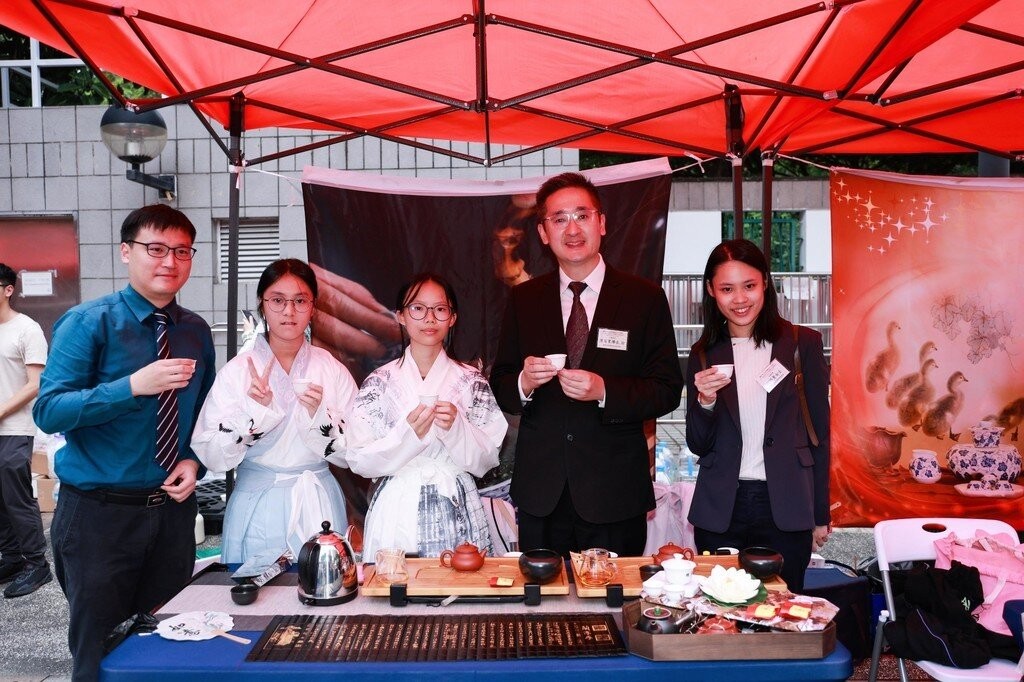 香港青少年中華文化藝術節暨茶文化大使就任活動舉行香港新聞網10月31日電 香港中山社團總會青年事務委員會於10月26日假黃大仙文化公園主辦、九龍社團聯會黃大仙地區委員會合辦、香港青少年全人發展協會、香港茶道總會、品字堂及彭少榮暨麥燕蓮慈善基金共同協辦名為“慶祝中華人民共和國成立七十五周年 第一屆香港青少年中華文化藝術節暨第一屆香港青少年茶文化大使就任”活動。 是次活動的宗旨是向市民宣揚中華傳統文化,現場設有多個展示中華傳統文化的攤位,包括 “非遺”文化介紹、甲骨文、周易、書法、茶道等。更舉辦了剪紙、篆刻、甲骨文、蓮花燈製作、蔡李佛拳及兒童功夫體驗班。蔡李佛功夫表演也為活動生色不少。現場的漢服體驗及打卡位,讓市民更能融入傳統文化的氛圍。 當天,除了由獲委任為青少年茶文化大使的同學為大家作茶藝示範外,另外來自全港不同地區,於早前參加了青少年茶文化大使選拔的共10間中學的同學們,也在現場為市民泡茶及分享茶道文化。