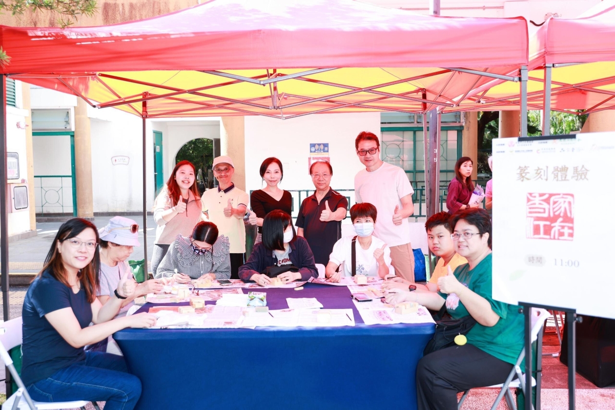 品字堂創辦人及香港青少年中華藝術文化節籌委主席陳浪曦女士與眾學員示範篆刻 香港青少年中華文化藝術節召集人、香港中山社團總會青年事務委員會主席彭詩敏女士在歡迎辭提到中華文化歷史悠久,經過數千年傳承至今。近年來,弘揚中華文化既氛圍不斷濃厚,“國潮”開始成為年輕人追逐的時尚。在傳承傳統文化精髓的同時,亦要與時並進融入當代的智慧及創造力,令文化自信煥發出更強的生命力,從而提高國家的文化軟實力,去講好中國故事。是次中華文化藝術節是一個引子,未來我們會在社區舉辦不同的傳統文化藝術體驗班,希望在青少年心中埋下中華文化的種子,通過親身體驗、經歷去增強他們的文化自信,做到薪火相傳。