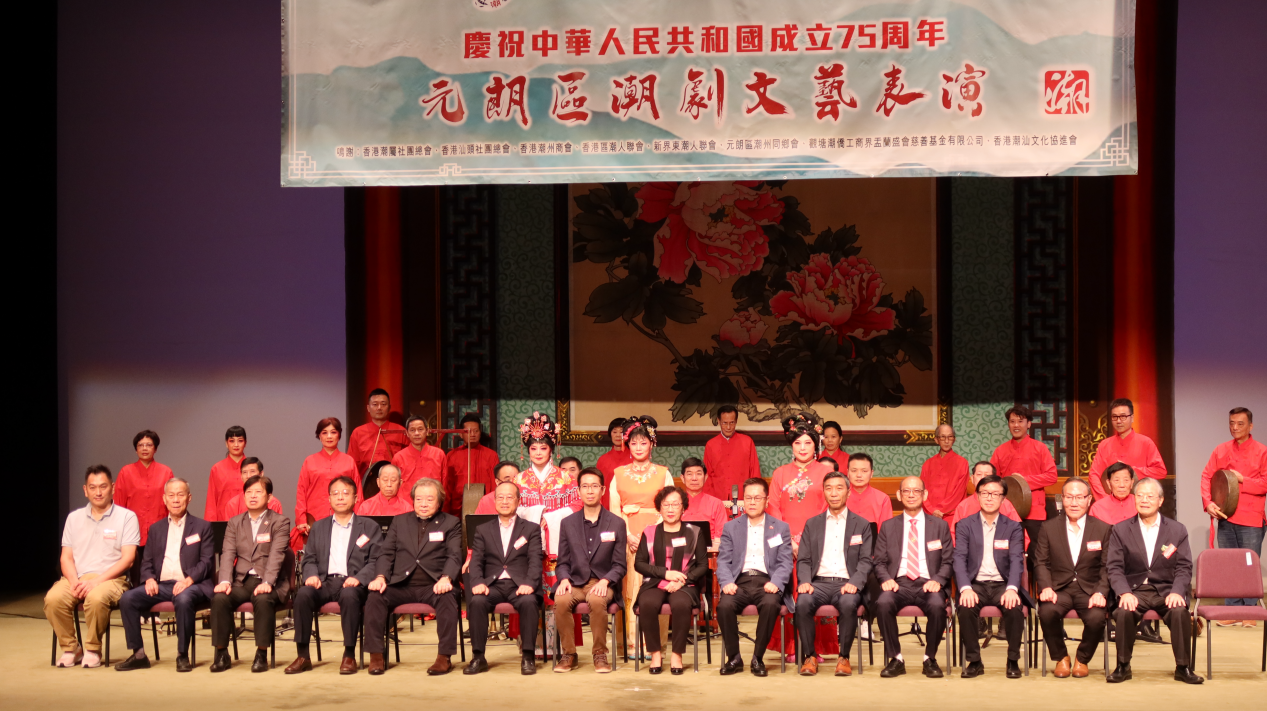 香港新聞網11月5日電 為了慶祝中華人民共和國成立75周年,香港潮人文藝協會於11月3日在元朗劇院舉辦元朗區潮劇文藝表演,本次潮劇表演是自去年後第二年在元朗區舉辦。