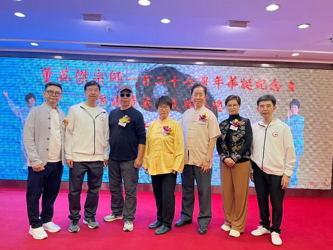 香港新聞網11月12日電 “香港董英傑太極拳總會”11月9日晚在九龍旺角倫敦酒樓舉行“董英傑宗師一百二十七周年華誕紀念暨香港董英傑太極拳總會成立20周年慶典”,董鄭曉芬師傅收徒儀式同場舉行,席間設武術表演,多名香港各門派武術師傅傾力演出,一派歡樂景象。 香港“董英傑太極拳總會”由董英傑先生孫媳董鄭小芬創立,旨在將中華武術精粹太極拳傳播發揚光大。 董鄭小芬70年代初隨家翁董俊嶺及夫婿貴辰師學習董家楊式太極拳。 90年代在香港教拳至今近30年,桃李滿天下。 歷年來,董鄭小芬師傅教授過的學生愈千人,遍布世界各地和港澳地區,參與各種武術比賽和匯演,均受到好評。