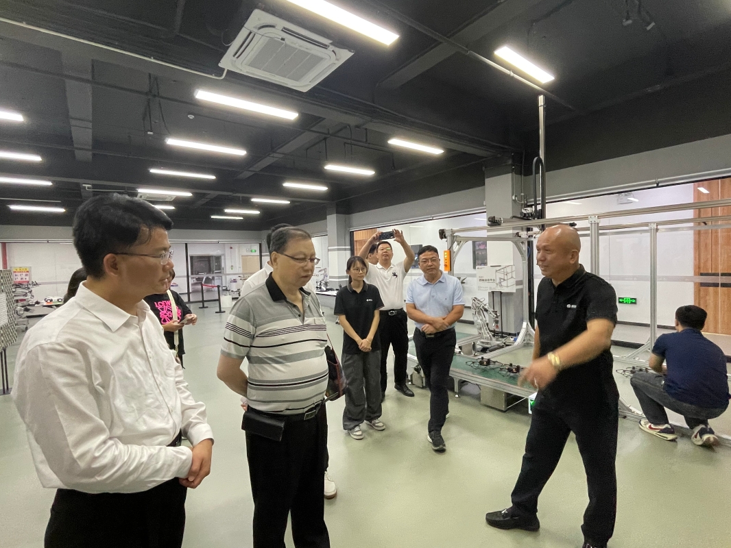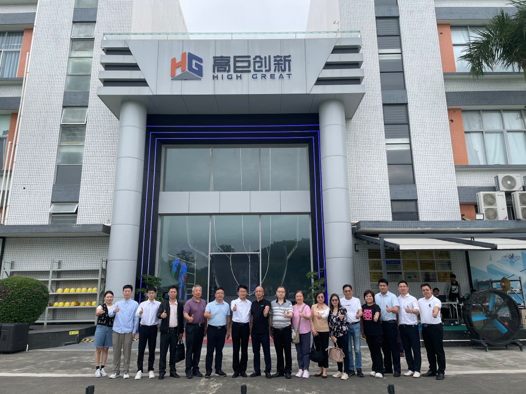 18日上午,薌城區委常委魏毅坤到高巨創新公司參觀,高建民董事長(右)介紹,今年巴黎奧運會無人機表演,香港的無人機表演,都是高巨公司的,現高巨公司無人機表演佔全球百分七十以上