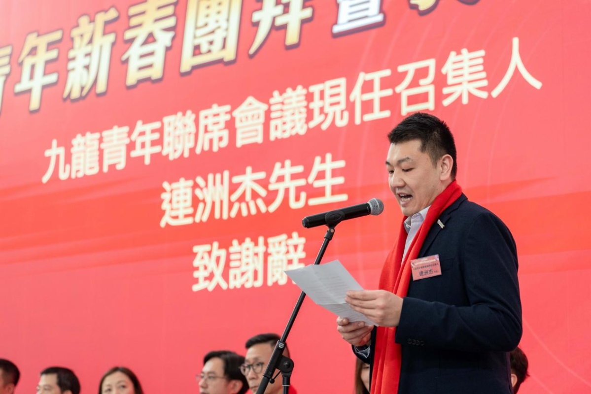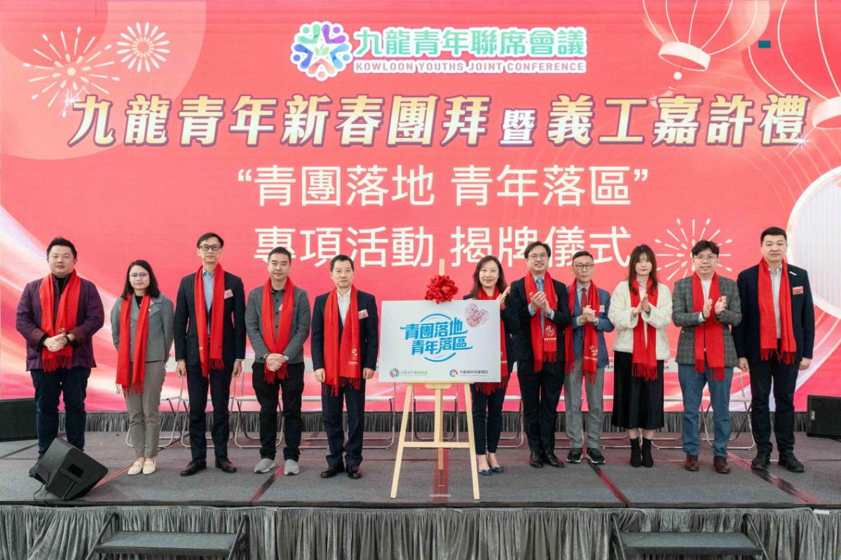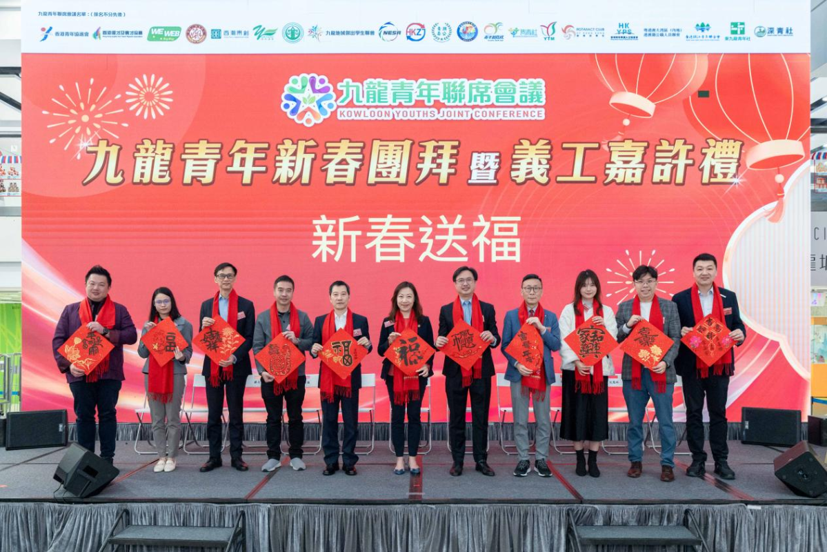 九龍青年聯席會議舉辦新春團拜暨義工嘉許禮香港新聞網2月17日電 2月15日,九龍青年聯席會議於農曆蛇年新春之際,在九龍城廣場隆重舉辦“九龍青年新春團拜暨義工嘉許禮”。出席活動的主禮嘉賓有:民政事務總署署長杜潔麗女士, JP、中央政府駐港聯絡辦公室九龍工作部副部長李文彬先生、全國人大代表,青年議會會長冼漢廸先生,MH、油尖旺民政事務專員余健強先生, JP、深水埗民政事務專員黃昕然先生, JP、九龍城民政事務專員蒋志豪先生,JP、署理觀塘民政事務專員陳慧珍女士、黃大仙民政事務助理專員何穎童女士、萬希泉鐘錶有限公司創辦人沈慧林先生、立法會議員,九龍青年聯席會議首任召集人梁毓偉先生, JP、全國青年委員、九龍青年聯席會議現任召集人連洲杰先生。活動匯聚了各界青年,共同慶祝傳統佳節,並表彰過去一年中為社區作出卓越貢獻的青年義工。此次活動不僅是一場新春盛會,更是對青年力量的肯定與展望,旨在推動青年事務發展,攜手共創更美好的未來。