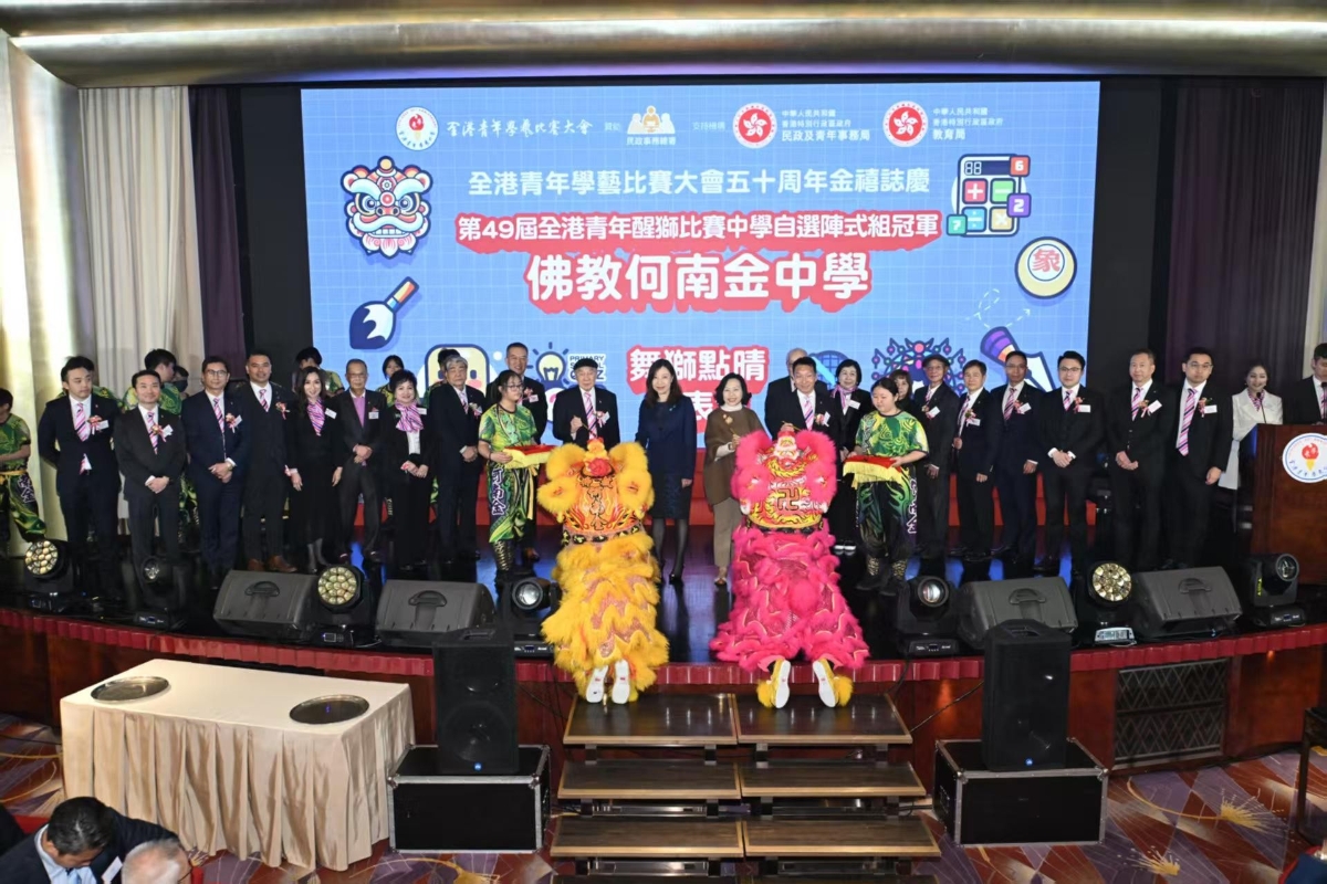 香港新聞網2月17日電 全港青年學藝比賽大會日前假灣仔君悅酒店舉行五十週年金禧晚宴,超過400位嘉賓包括大會贊助人,評判,合作夥伴,“學藝大使”(曾經參與學藝比賽而獲獎的青年)及其家人出席。大會邀請民政及青年事務局局長麥美娟及民政事務總署署長杜潔麗擔任主禮嘉賓。晚宴氣氛熱鬧又溫馨,在儀式開始時,一眾曾經參與學藝比賽的“學藝大使 ”,手持心燈與主禮嘉賓們在台上,展現“薪火相傳五十載,弘揚學藝育英才”文化傳承的承諾。晚宴中更有得獎者的精彩醒獅及粵劇表演。 大會主席陳毅生致歡迎辭提到,大會初創時比賽只有五項,至今比賽項目已增加至十九項,由傳統文化以至社區保育多個範疇,展現了大會與時並進的精神。五十年來大會本著推廣中國文化與傳統藝術的初心,累積的參賽人次超過59萬。除了感謝所有參加者,比賽評判,贊助人及合作夥伴,最要衷心感謝民政事務總署由本會創辦至今一直的無間支持。感恩個往,展望未來,讓大家攜手共創下一個五十年的輝煌篇章! 麥美娟致辭時讚揚學藝大會一直致力弘揚中華文化,透過舉辦比賽,加強青年對中國文化藝術嘅興趣同認識,鼓勵他們持續學藝,陶情養志。 今年適逢金禧誌慶,學藝大會特別舉辦“學藝節”,邀請各區民政事務處合辦不同活動。先後在中西區舉辦演講技巧工作坊,及在九龍城舉辦“學藝節啟動禮 ”,由學藝大使帶領75位小學生即席揮毫,書寫“學藝 ”“中國心”等主題詞,在各社區進一步推廣中華文化藝術,培養年輕人嘅愛國情懷。