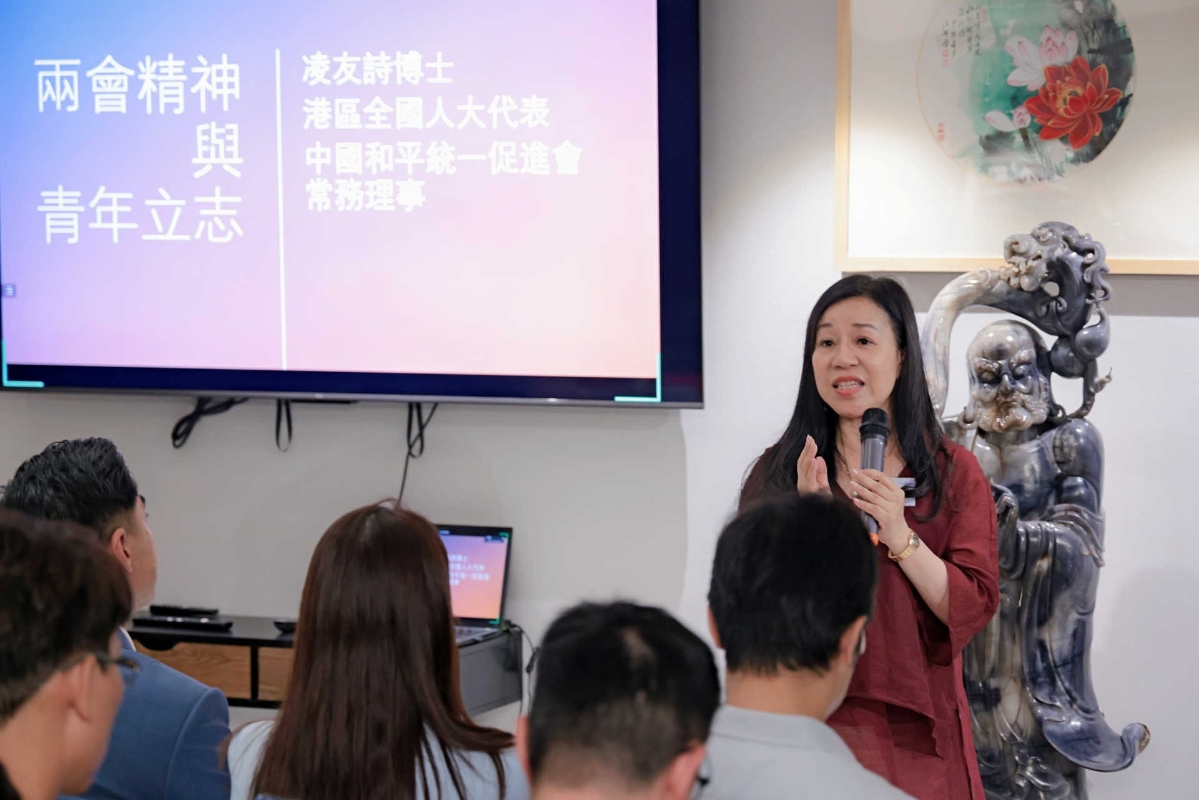 全國人大代表、中國和平統一促進會香港總會常務副會長、全國婦聯執委凌友詩 全國人大代表、中國和平統一促進會香港總會常務副會長、全國婦聯執委凌友詩通過分享參加全國兩會的心得,剖析國家政策對兩岸三地協同發展及青年創業的戰略性機遇,強調“國家發展大局是香港繁榮穩定的最大底氣”。她指出,“敢言者說”不僅是思想碰撞的平台,更應成為行動的起點,期待以輕鬆交流為契機,將會上共識轉化為實質合作,為兩岸三地發展注入新動能。她鼓勵青年人應積極把握國家賦予的大好機遇,珍惜光陰,多學習多實踐,在時代的浪潮中實現自身價值,為香港的繁榮穩定積極貢獻力量。