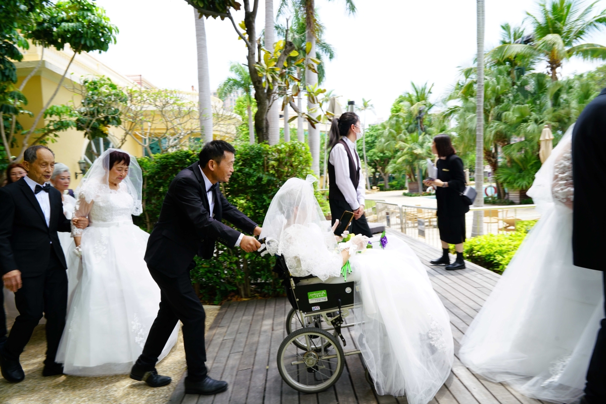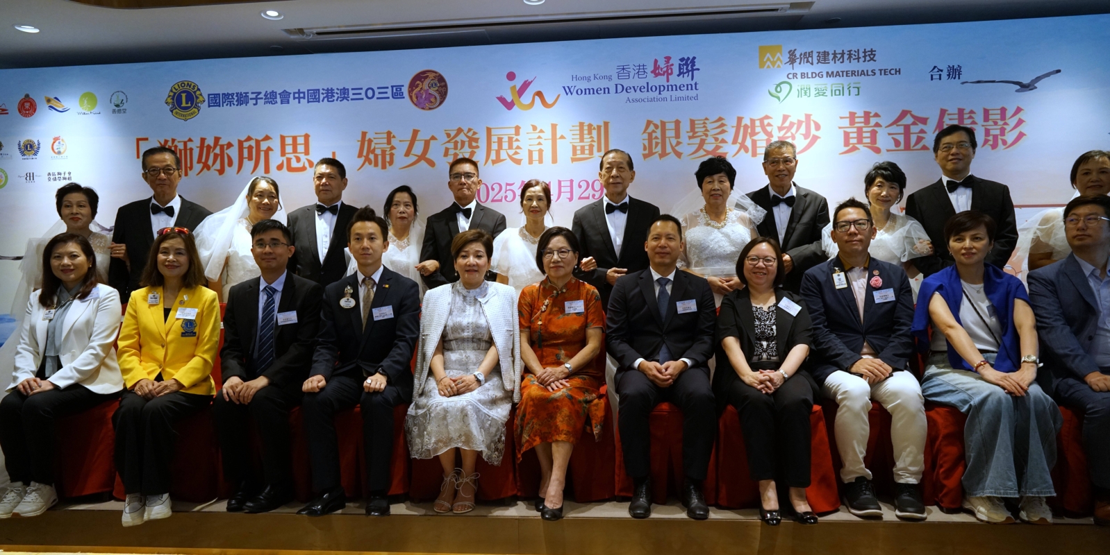 香港婦聯主席葉順興、大會主席吳珊珊(香港中通社圖片) 香港婦聯主席葉順興透露,現場拍攝婚紗照的長者,最年長的超過83歲,愛與關懷永遠不嫌晚!她表示,“銀髮婚紗 黃金倩影”活動的誕生,就是為了彌補長者們年輕時未能留下婚紗照的遺憾。這不僅僅是一張照片,更是一份珍貴的回憶,是對彼此多年陪伴、互相扶持的致敬,也是對愛情最美好的詮釋。 出席當天活動的嘉賓還包括國際獅子總會中國港澳303區沈顏總監、華潤建材科技群工部王夢驪副總監、中聯辦新界工作部李偉希處長、屯門區福利專員何婉明、屯門警區指揮官署理總警司黃浩瀚、屯門民政事務助理專員朱旻聰等。本次活動高效圓滿舉辦,得到多個機構的支持和義工的協助。現場為多個贊助機構、攝影師、化妝師頒發了感謝狀。(完) 【編輯:陳卓儀】