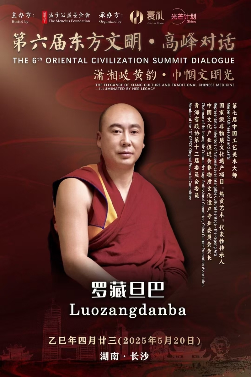 “第六屆東方文明·高峰對話”開幕 羅藏旦巴以畫筆連接熱貢唐卡與中醫藥香港新聞網5月21日電 由孟子公益基金會、中華母親節促進會、世界中醫藥學會聯合會傳統醫藥非物質文化遺產產業分會、中國詩書畫研究會、中國實學研究會等多家機構聯合主辦,演講局控股、國策智庫研究院、光芒時尚集團承辦的“第六屆東方文明·高峰對話”於2025年5月20日在長沙舉辦。中國青海熱貢唐卡第十四代傳承人羅藏旦巴獲邀出席。 羅藏旦巴發言時,感謝主辦方這份跨越喜馬拉雅山脈的邀請函,他此刻站在人類文明的交匯處,倍感榮幸。他指,深感這場文明對話的非凡意義,會以手中畫筆為媒介,講述熱貢唐卡如何架起中醫藥文化通向世界的彩虹橋。