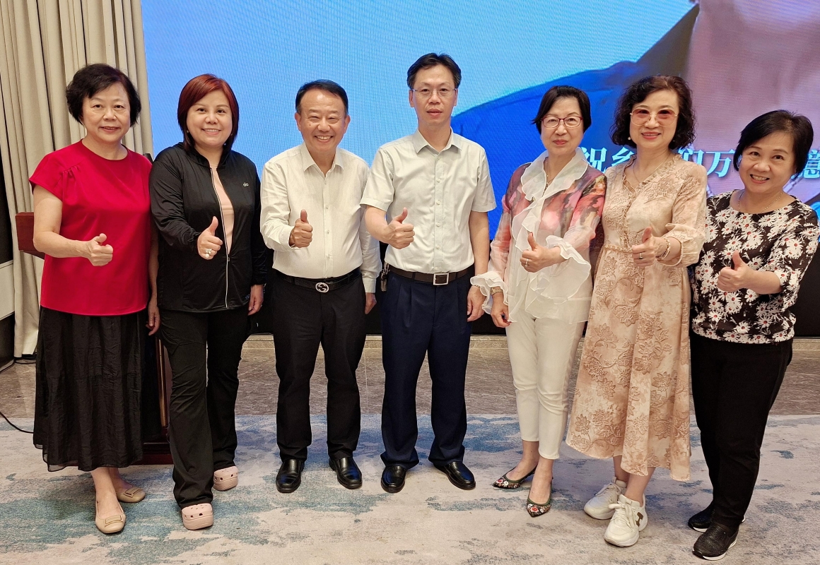 薌城區僑聯主席李致淩(中)與香港漳州籍歸僑僑眷代表(左起)莊沁如、曾珍璇、余敏、林素珍、吳妙琴、林素英合影。 【編輯:洪少葵】