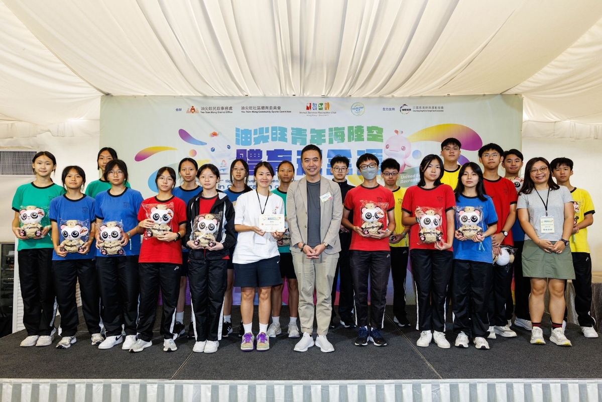出席活動的嘉賓包括立法會議員鄭泳舜、立法會議員林哲玄、油尖旺民政事務專員余健強、三軍會主席張伯陶、油尖旺區青年發展及公民教育委員會主席魏麗霞,以及油尖旺社區體育委員會主席湯振傑。 主禮嘉賓在台上一起發射融入“海陸空”運動元素及中國傳統剪紙工藝特色的“哨子穿雲箭”,象徵傳揚油尖旺區對全運會的支持。 油尖旺中、小學學生一起響應支持國家體育盛事,參與以“海陸空”為主題的各項體育活動,包括水上健體、滑索、匹克球、台克球、VR射擊、布袋球、穿雲箭、圓網球及桌上冰壺。少數族裔及本地青年共融同樂,一起玩盡今個暑假!(完) 【編輯:張明臻】