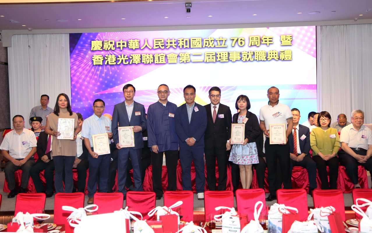 香港光澤聯誼會舉行“慶國慶暨第二屆理事就職典禮”香港新聞網9月22日電 香港光澤聯誼會9月20日晚於尖沙咀一酒樓舉行“慶祝中華人民共和國成立76周年暨第二屆理事就職典禮”。來自香港、福建南平及光澤縣的各界嘉賓、鄉親賢達共同見證這一重要時刻。