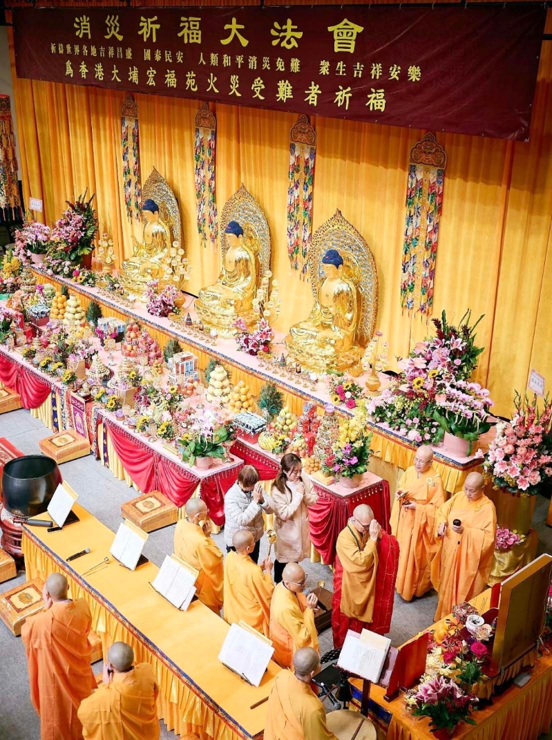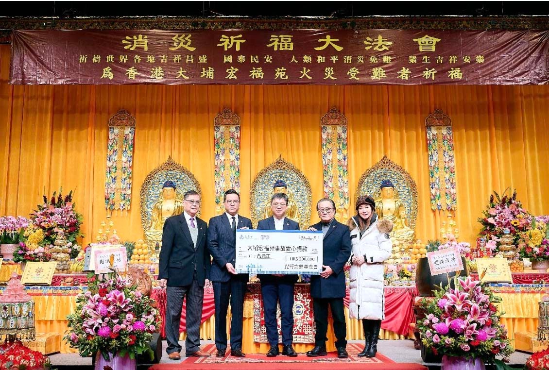香港新聞網2月5日電 香港去年11月底大埔宏福苑發生嚴重火災,對社區造成重大影響。為祈願眾生離苦得樂、吉祥安康,香港覺行念慈基金會2月4日特別舉辦一連三日的“消災祈福大法會”二千位善心人士為大埔宏福苑居民誦經祈福,並於活動第三天舉行捐贈儀式,向東華三院“大埔宏福苑事故愛心捐款”專項遞交 50 萬支票,為受災居民及相關人士提供全方位支援。