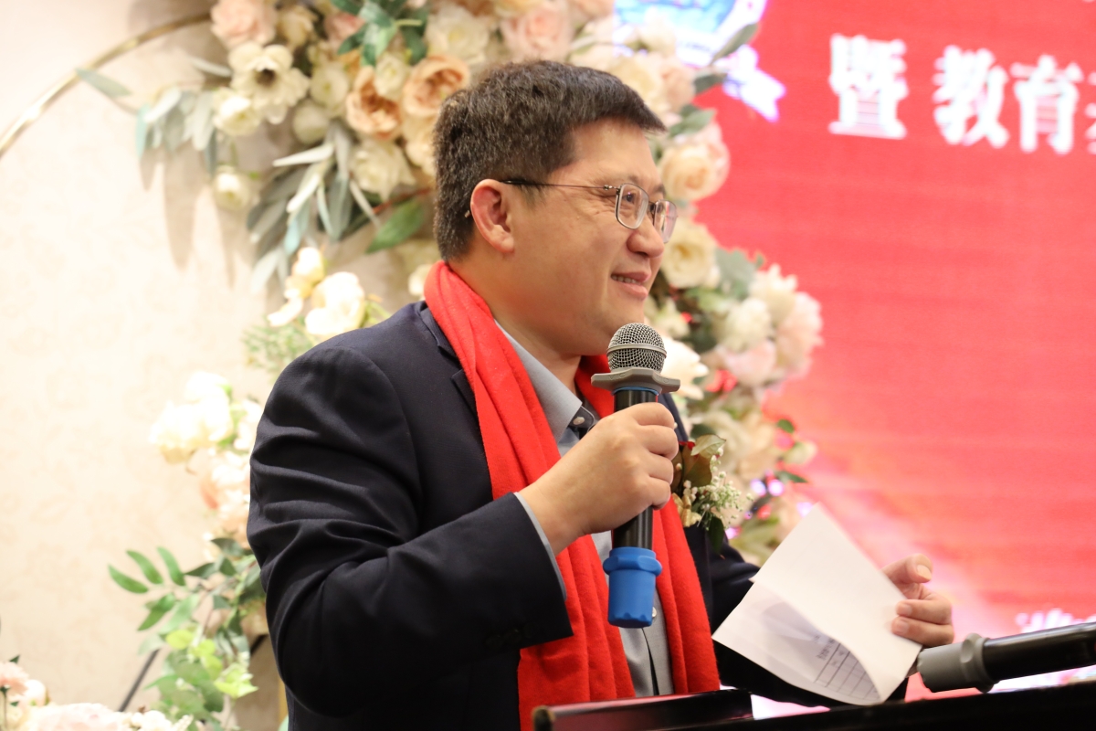 旅港銀江同鄉會、教育基金第三屆會長李清懷鄉賢發表講話。(右)