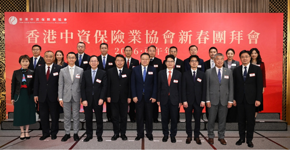 香港新聞網3月19日電 香港中資保險業協會近日舉辦2026年新春團拜會,香港特別行政區政府財經事務及庫務局副局長陳浩濂、中央政府駐港聯絡辦經濟部副部長呂峰、保險業監管局執行董事劉中健、香港金融發展局行政總監董一岳、香港中國企業協會副總裁曾燊典、中國太平保險集團總經理李可東、香港特別行政區行政會議成員陳健波、香港特別行政區立法會議員陳沛良、香港保險業聯會行政總監劉佩玲應邀出席,並與香港中資保險業協會會長尹兆君一同擔任主禮嘉賓,各會員單位代表齊聚一堂,迎春納福,共敘情誼,共話發展。