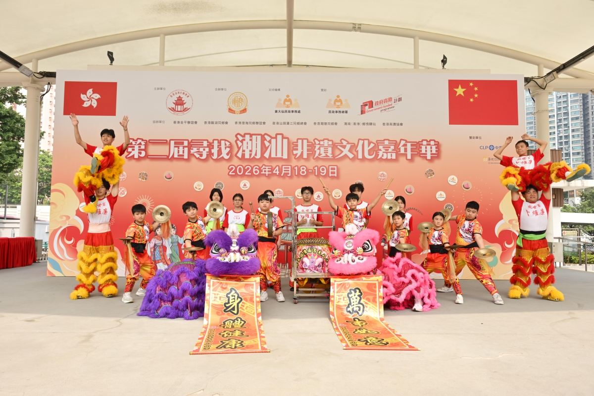 第二屆尋找潮汕非遺文化嘉年華4月18至19日在香港黃大仙廣場舉行。活動透過攤位展覽、非遺示範、文化表演及互動體驗,讓市民近距離感受潮汕非物質文化遺產的深厚底蘊與當代活力,進一步推動文化傳承與社區連結。 活動由香港汕頭社團總會主辦、香港潮州商會合辦,並獲黃大仙民政事務處支持。署理民政事務總署署長王婉蓉、香港中聯辦社聯部副部長胡啟明、香港中聯辦九龍工作部副部長李文彬、汕頭市委統戰部常務副部長陳爍煥及多位立法會議員主禮活動。