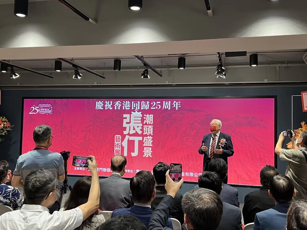 香港新聞網7月12日電 在香港回歸祖國25周年之際,由香港廈門聯誼總會主辦的“潮頭盛景——張仃藝術展”開幕禮12日在香港集古齋舉行,這是張仃首次在香港舉辦的大規模個展。