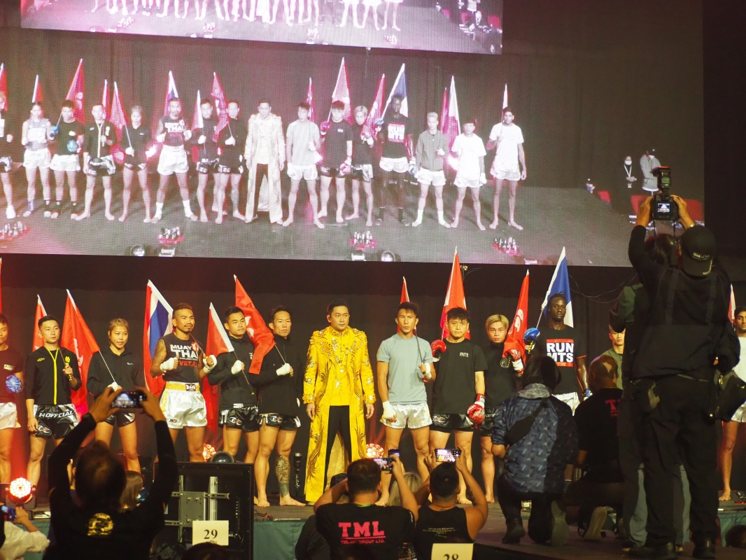 I-1 世界泰拳賽會創辦人葉文龍帶領參賽選手登台亮相。