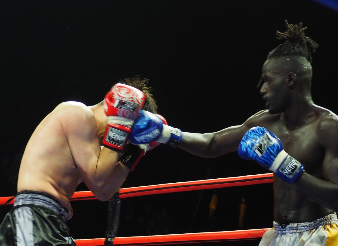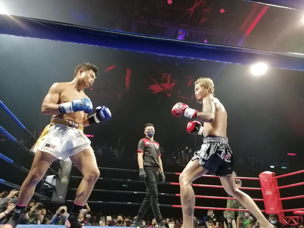 香港拳手陳展業(右)對戰香港拳手朱嘉勤。