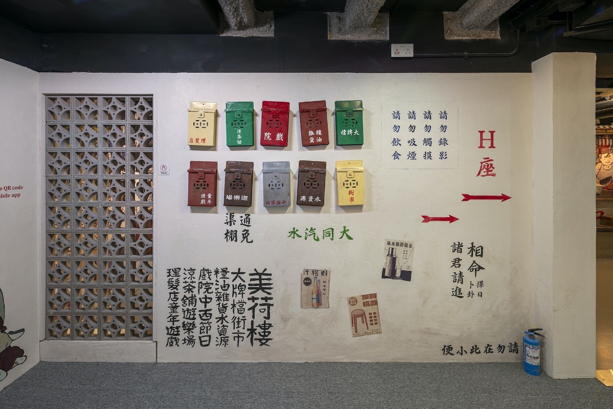 美荷樓復原五六十年代生活場景 展覽亦介紹不少生活冷知識,例如“大牌檔”名字緣由原來有關早年小販牌照政策:當時固定攤檔獲發大牌,流動小販則獲發細牌,故稱“大牌檔”。大牌檔多是相鄰而排,所以又稱為“大排檔”。