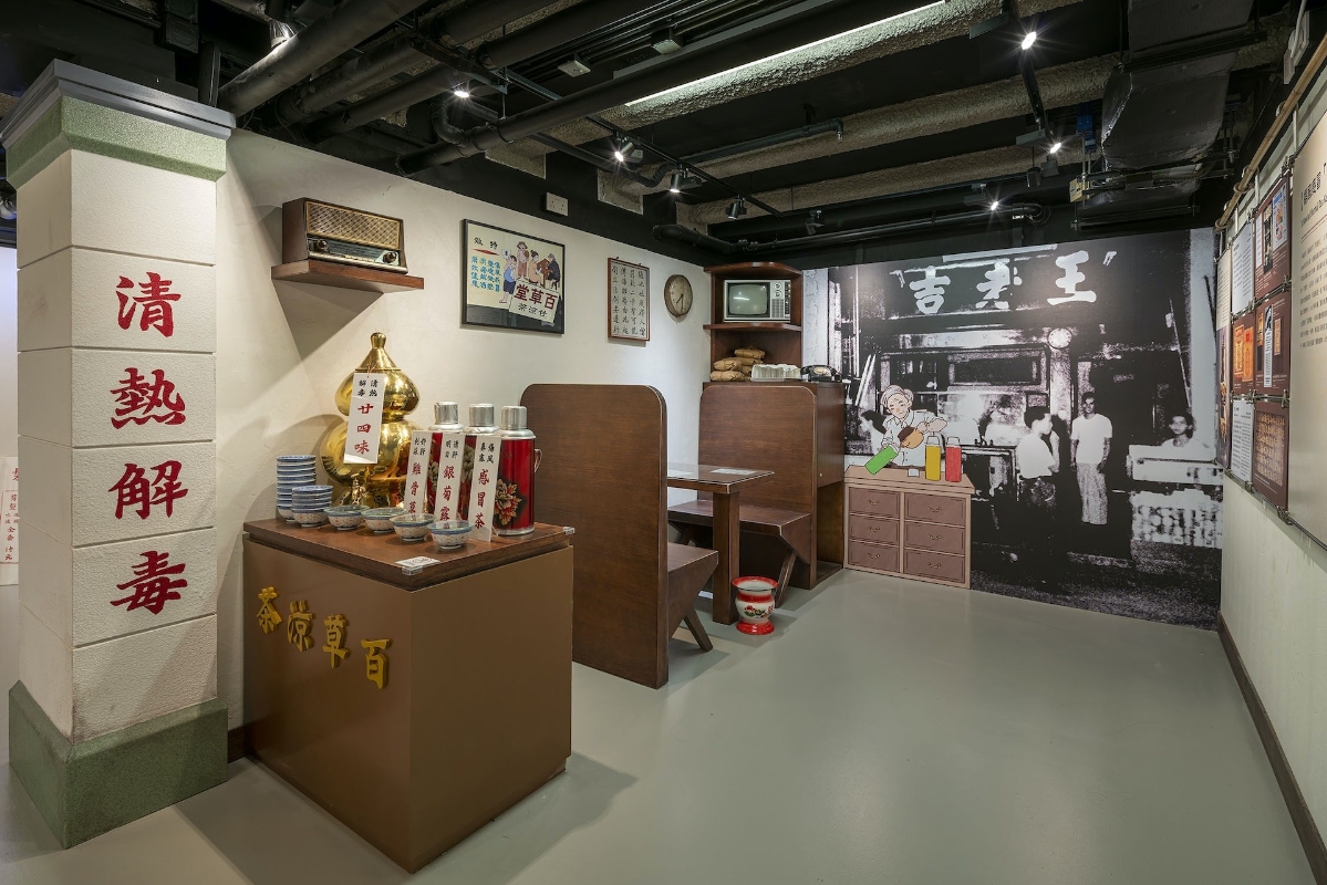 懷舊涼茶鋪 而同層另一展廳則展示六十年代涼茶店風貌,當時並不是所有市民都接受西方醫療及藥物,飲涼茶較經濟、方便、亦可作保健強身之用。在六十年代,電視、收音機及點唱機等娛樂工具並未普及至每家每戶,配備這些設施的涼茶舖自然成為街坊昔日聚腳地。