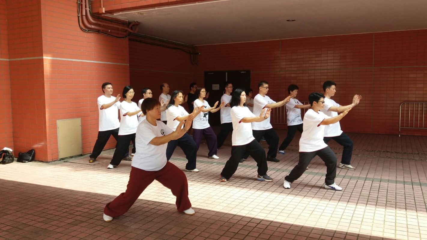 學生正跟隨小芬老師練習太極氣功“十六式”。