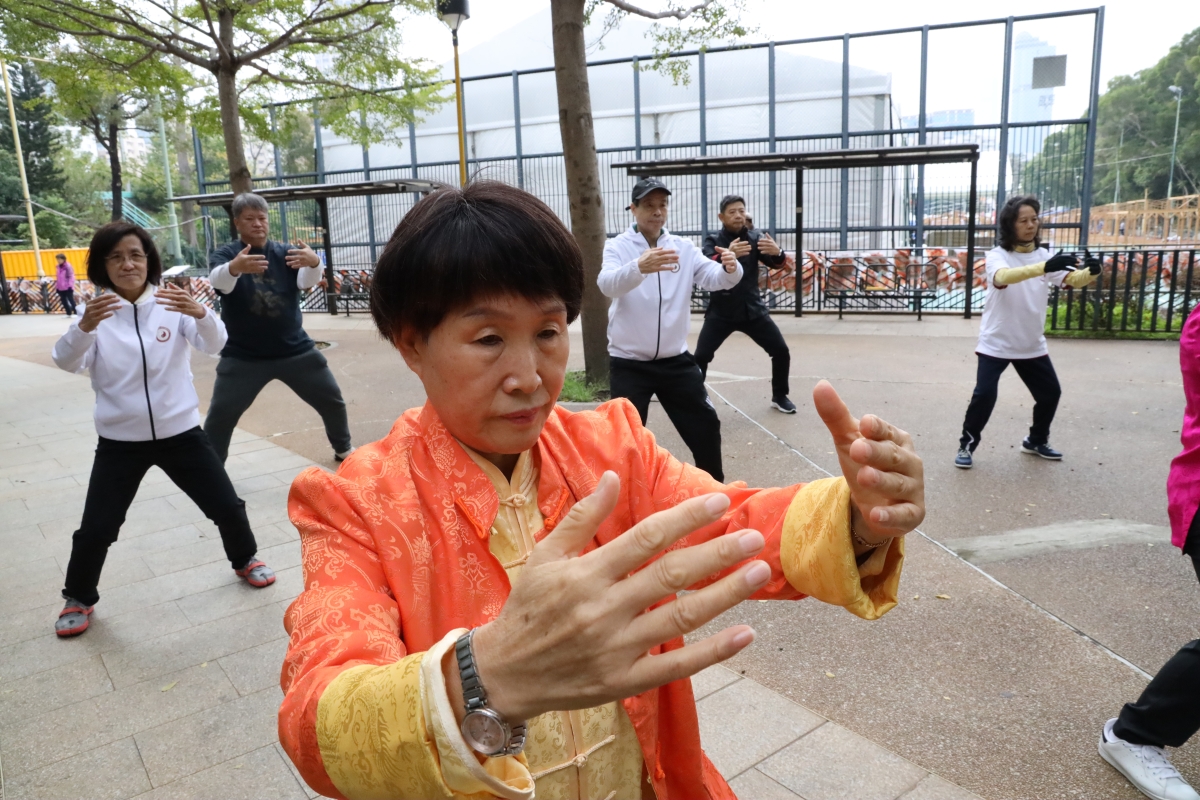 董鄭小芬師傅在旺角花墟公園教導學生。