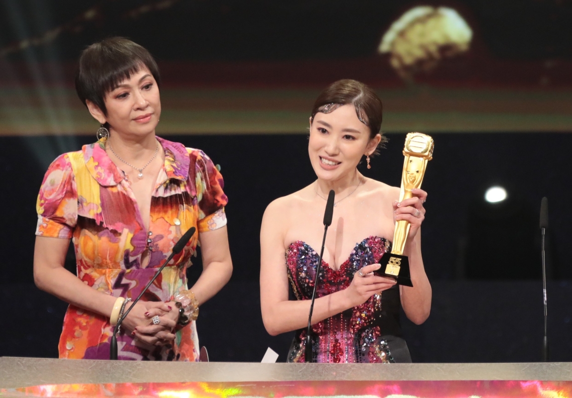 江美儀奪得最佳女主角(右)、陳山聰奪得最佳男主角。
