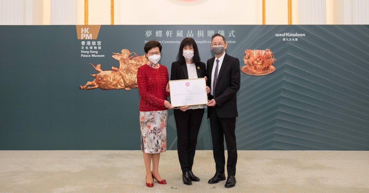 2022年盧茵茵(中)與朱偉基(右)於捐贈儀式 香港故宮文化博物館館長吳志華表示:“隨著香港重新迎接來自世界各地的旅客,我們很高興能向旅客呈獻本館的首個館藏特別展覽,展示古代中國獨特的貿易和文化交流與演變,讓觀眾了解中華民族的一體多元,誘發深層次的文化欣賞。我們非常感謝盧茵茵和朱偉基的慷慨捐贈,對博物館的發展帶來了深遠的影響。今年亦是國家倡議‘一帶一路’十周年,博物館將透過是次古代中國金飾展覽弘揚中華文化,進一步確立香港作為中外文化藝術交流樞紐的角色,讓世界各地觀眾領略多采多姿的中華文化藝術。”