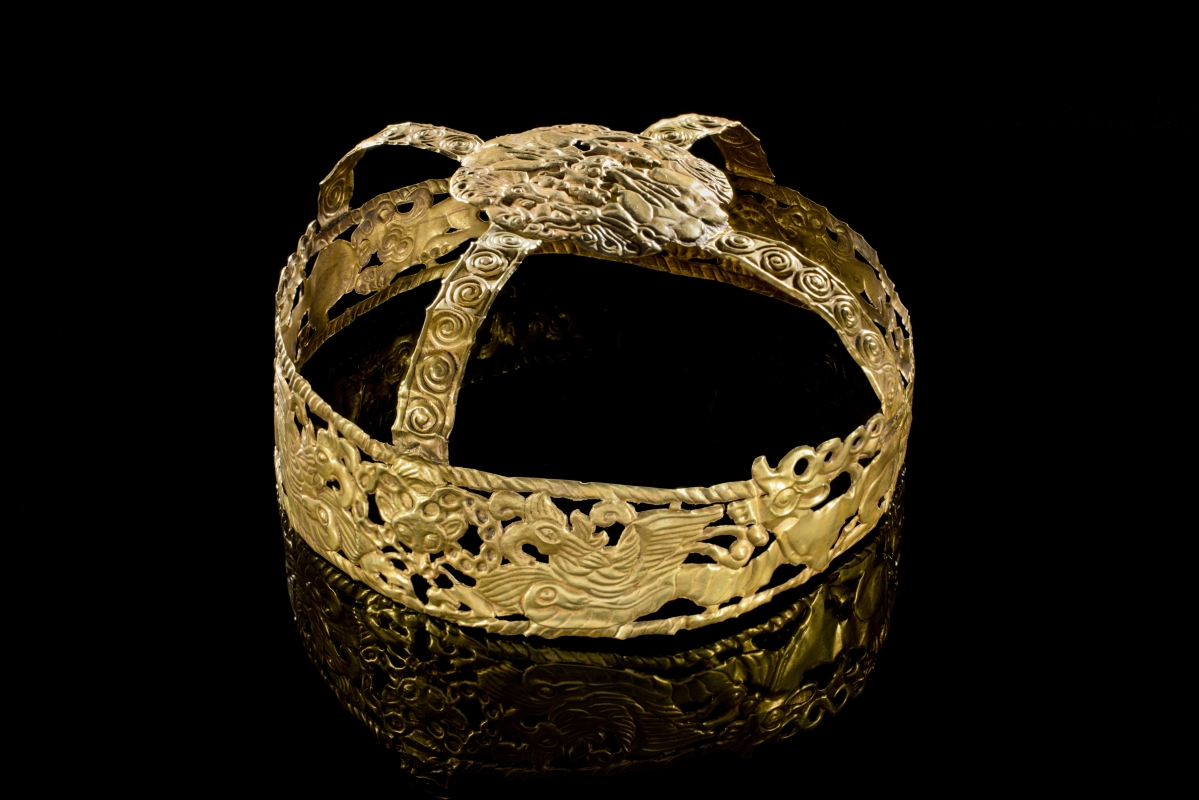 纏枝菊花及兔銜靈芝紋梳背(圖片:香港故宮文化博物館) 大型金器展覽展出跨越三千年的歷史珍藏 是次“金彰華彩——香港故宮文化博物館與夢蝶軒藏古代金器”特展是香港近年來最大型的金器展覽,集中展示黃金製品在中國過去三千多年歷史中的藝術和技術成就,探討金器在古代政治活動、文化生活以及跨區域互動交流等方面所扮演的角色。 是次展覽共展示200多件(套)製作精美的金器,年代最早的展品可追溯至公元前18世紀。部分珍品包括古代貴族華麗的金飾及其馬匹和馬車的裝飾品,雖經世代滄桑,這些精美的器物仍金光閃耀,當中大部分器物更是首次公開展出。