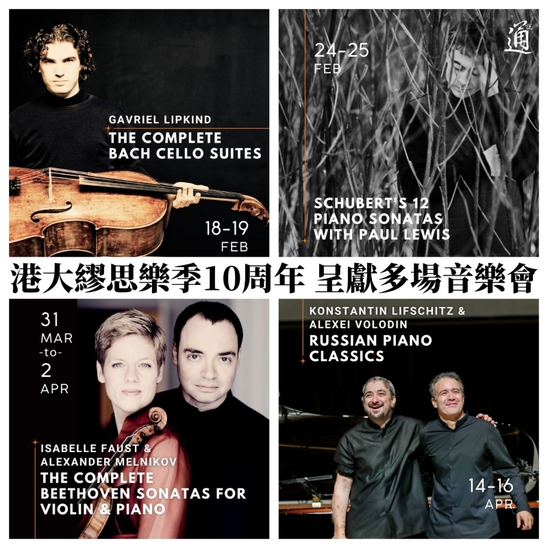 港大繆思樂季2023春季部分節目(製圖:黃璇) 2023年春季節目精華 • 當代以色列大提琴翹楚利普金(Gavriel Lipkind)將首度到訪港大,為大家呈獻巴赫六首大提琴組曲全集。(2月18至19日) • 被《留聲機》稱讚為“舒伯特的最佳詮釋者之一”的英國鋼琴家李維斯(Paul Lewis)將會再度訪港,為觀眾帶來舒伯特鋼琴奏鳴曲全集的首兩場音樂會。(2月24至25日) • 帕格尼尼大賽冠軍得主佛斯特(Isabelle Faust)與鋼琴家梅尼可夫(Alexander Melnikov)將攜手呈獻貝多芬小提琴奏鳴曲全集。(3月31至4月2日) • 列夫席茲(Konstantin Lifschitz)於2017年憑馬拉松式演奏32首貝多芬鋼琴奏鳴曲全集風靡繆思樂迷,這次訪港他將聯同霍羅丁(Alexei Volodin)帶來四場俄國鋼琴經典音樂會,精選梅特納、普羅哥菲夫、拉赫曼尼諾夫、史特拉汶斯基及蕭斯塔科維契的作品。(4月14至16日) • 柏林愛樂首席樫本大進(Daishin Kashimoto)將夥拍《留聲機》“編輯精選”鋼琴家巴克斯(Alessio Bax),為大家帶來莫扎特、布拉姆斯和普羅哥菲夫的三首小提琴奏鳴曲。(5月14日) • 2019年旋風式登陸港大並觸動無數樂迷的日本鋼琴家辻井伸行(Nobuyuki Tsujii)載譽回歸繆思樂季。20歲勇奪“范.克萊本國際鋼琴大賽”大獎的他,今次將演奏貝多芬、李斯特、和拉威爾的作品,以及烏克蘭作曲家卡普斯汀(Nikolai Kapustin)的《八首音樂會練習曲》。(6月10日) 繆思樂季十年文化足跡 “港大繆思樂季”的成立,源自團隊十年前的一個願景。2013年時逢香港大學擴建百週年校園,新校舍的亮點之一,是音效極佳、可容納900人的李兆基會議中心大會堂。港大Cultural Management Office團隊和一眾音樂系教授著手將它打造成一個可為港大及全港社群帶來新視野及啟發靈感的文化平台。繆思樂季希望透過具創意特色並富教育元素的音樂會和講座,培養觀眾並為熟悉音樂的朋友帶來不一樣的聆賞經驗。過去十年,我們屢次在節目構思上推陳出新,積極打破台上演出者和台下觀眾的隔膜,縮短偉大作品通往心靈深處的距離,並設法跨越學術研究和音樂欣賞之間的鴻溝。感謝各演奏家、作曲家、學者及觀眾的信任,促成了各種模式的合作機會。十年前,李兆基會議中心大會堂原址為水務署的配水庫,時至今日,成了為師生灌注一泓文化活水的泉源,“港大繆思樂季”亦成為城中的重要文化印記之一。 【編輯:黃璇】