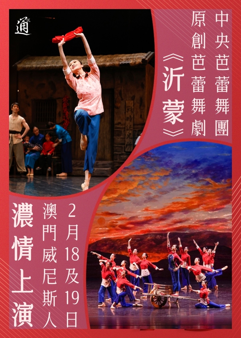 香港新聞網2月9日電 由文化和旅遊部與澳門特區政府社會文化司主辦,中央芭蕾舞團原創芭蕾舞劇《沂蒙》將於2月18及19日(星期六及日)晚上8時在澳門威尼斯人劇場上演。